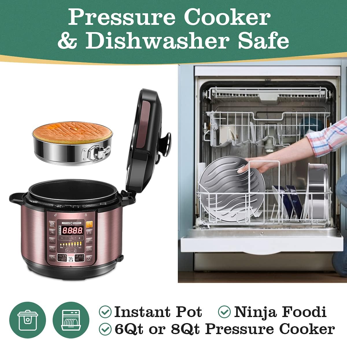 - MORE WAYS FOR BAKING: Work perfectly in air fryer, oven and pressure cooker, which is convenient for your life