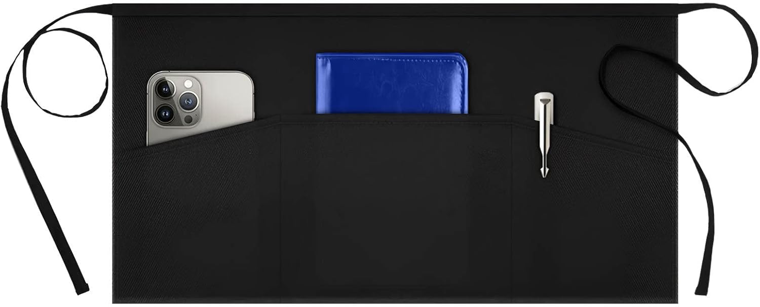 Syntus 1 Pack Server Aprons with 3 Pockets, Waterdrop Resistant Waitress Waiter Waist Apron, 11.5-inch Black