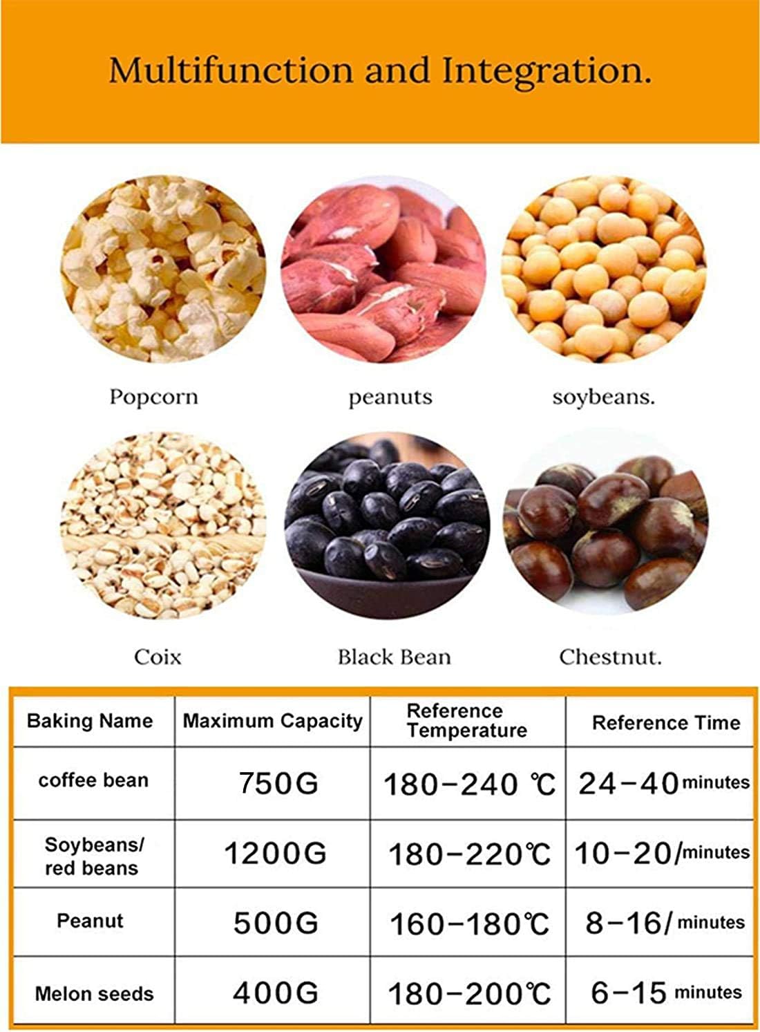 - Multi-function: Affordable coffee roaster machine can be used to roast many kinds of beans including peanuts, chestnut, barley, dried fruit, popcorn, and so on. It could be used for home, coffee shop, or restaurant. It is a dual-use Baking Machine that does the job well