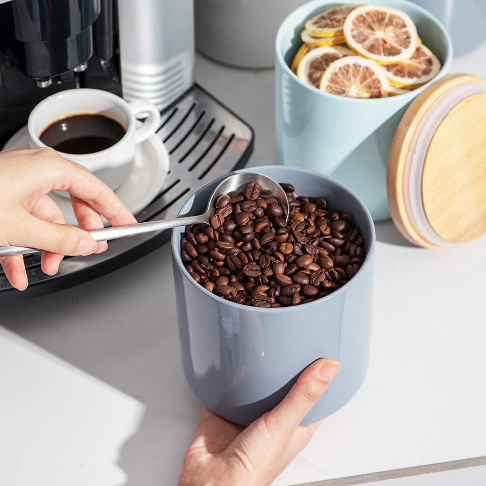Sweejar Kitchen Canisters Ceramic Food Storage Jar, Stackable Containers with Airtight Seal Wooden Lid for Serving Coffee Bean, Flour, Tea, Spice and More - 39 Fl Oz (Gray)