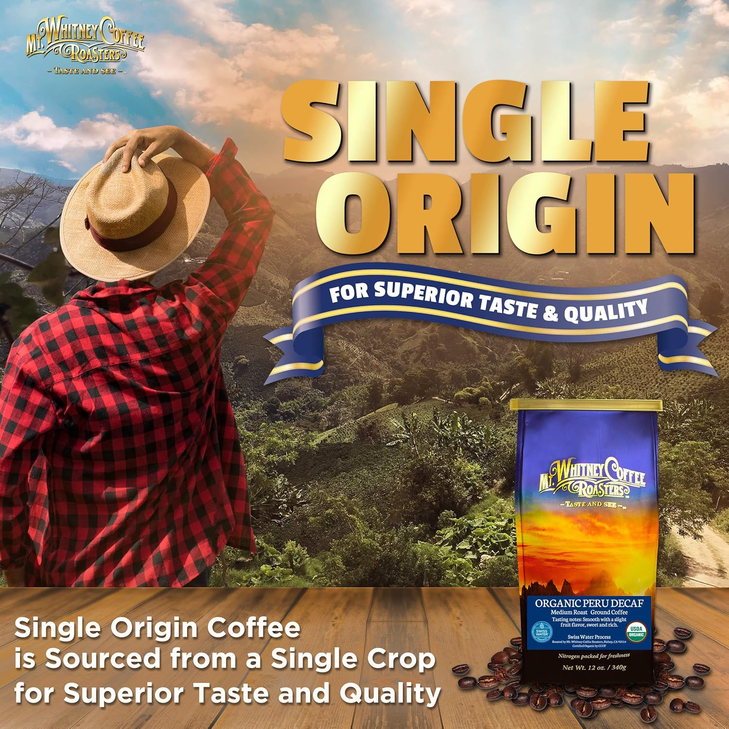 - SINGLE ORIGIN FOR SUPERIOR TASTE WITHOUT THE CAFFEINE - Mt. Whitney’s Organic Decaf Coffee is a single origin coffee, comprised of a single crop. This can accentuate certain flavor attributes specific to a region. By using the Swiss Water Process, the caffeine is removed in a gentle, chemical-free procedure that retains this shade grown organic coffee’s superior taste and quality.