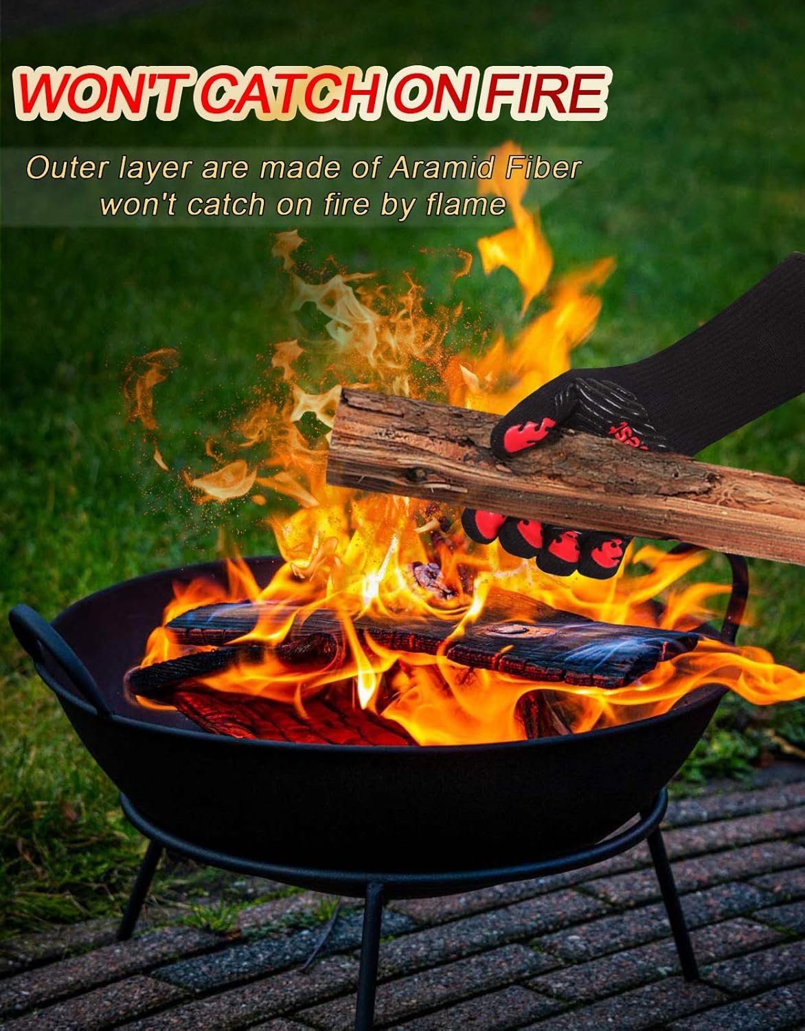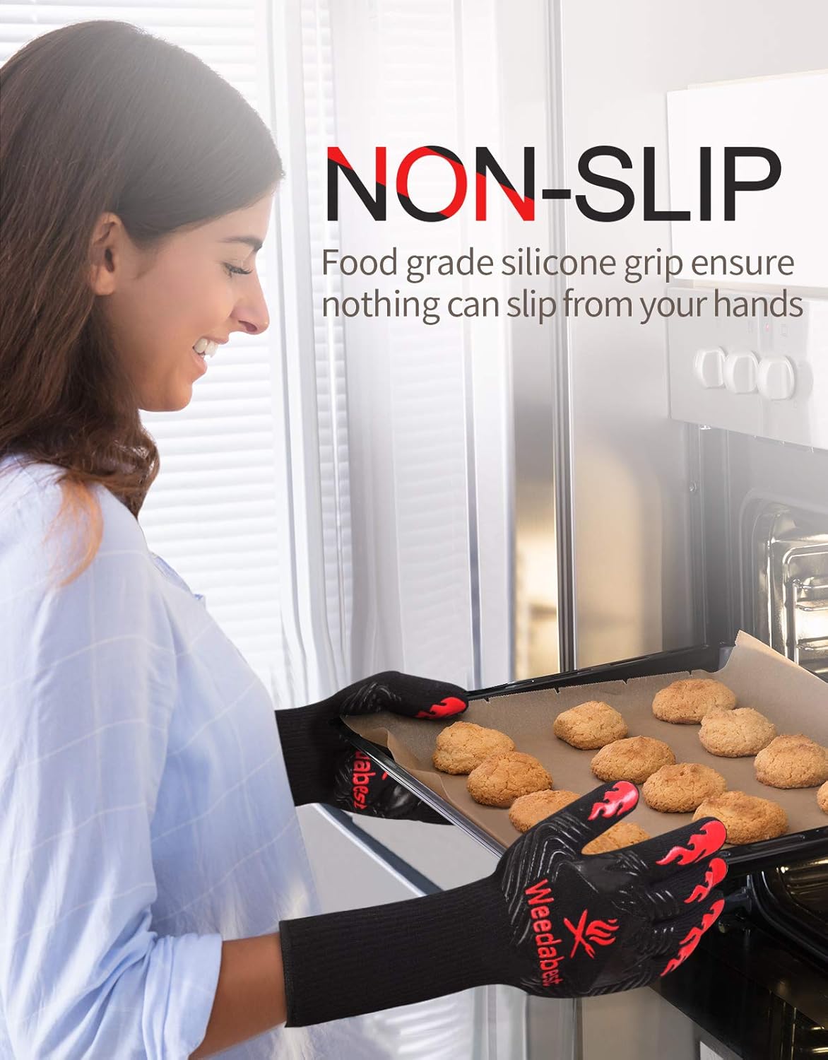 WEEDABEST Hot BBQ Gloves Heat Resistant Kitchen Oven Mitts Professional Long Heat Resistant Cooking Gloves for Grill,Grilling,Smoker,Barbeque,13.5 inch-Gray