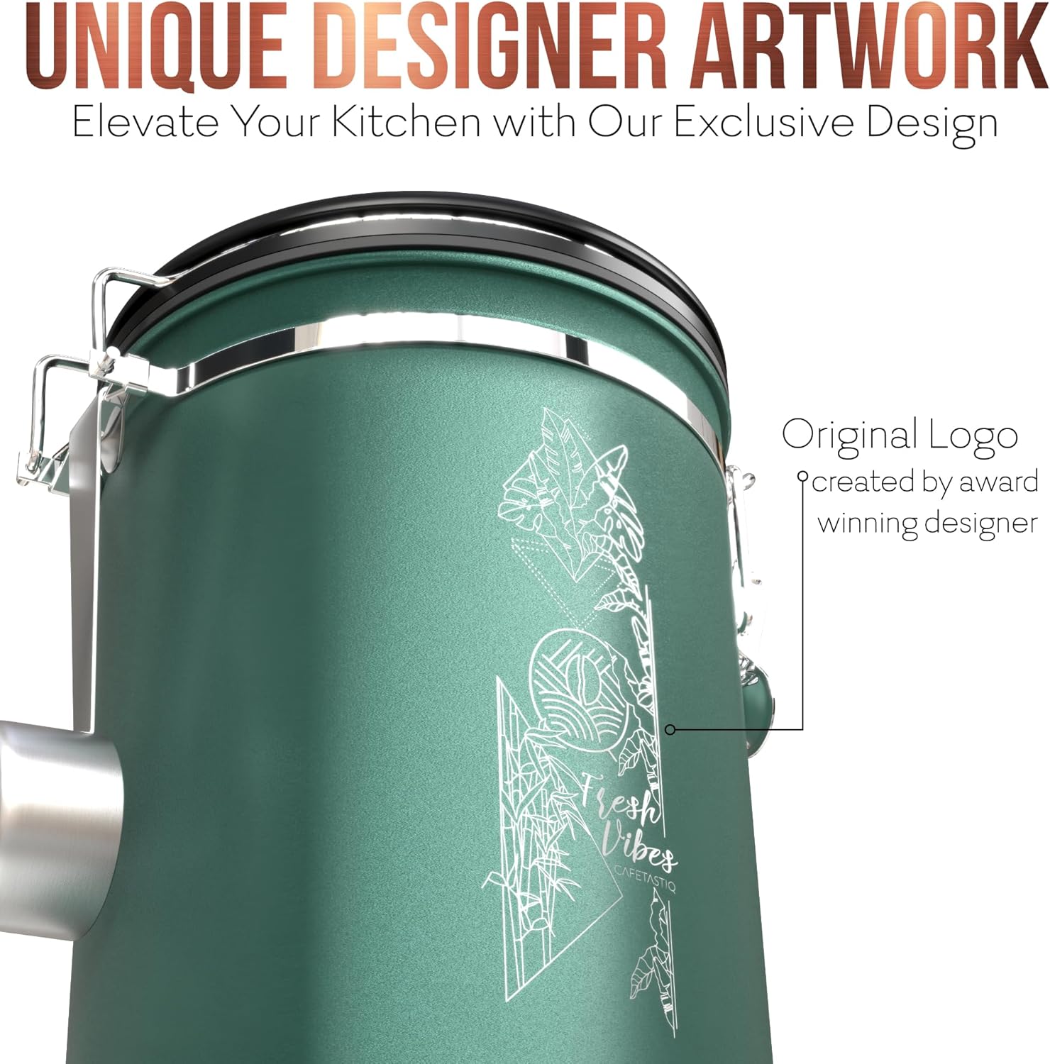 38oz / 22oz Coffee Canister – Airtight Stainless Steel Storage Container with Date Tracker & Scoop, Sealed Jar for Grounds, Beans, Tea, Flour, Cereal, and Sugar (Green Vibes, 22OZ)
