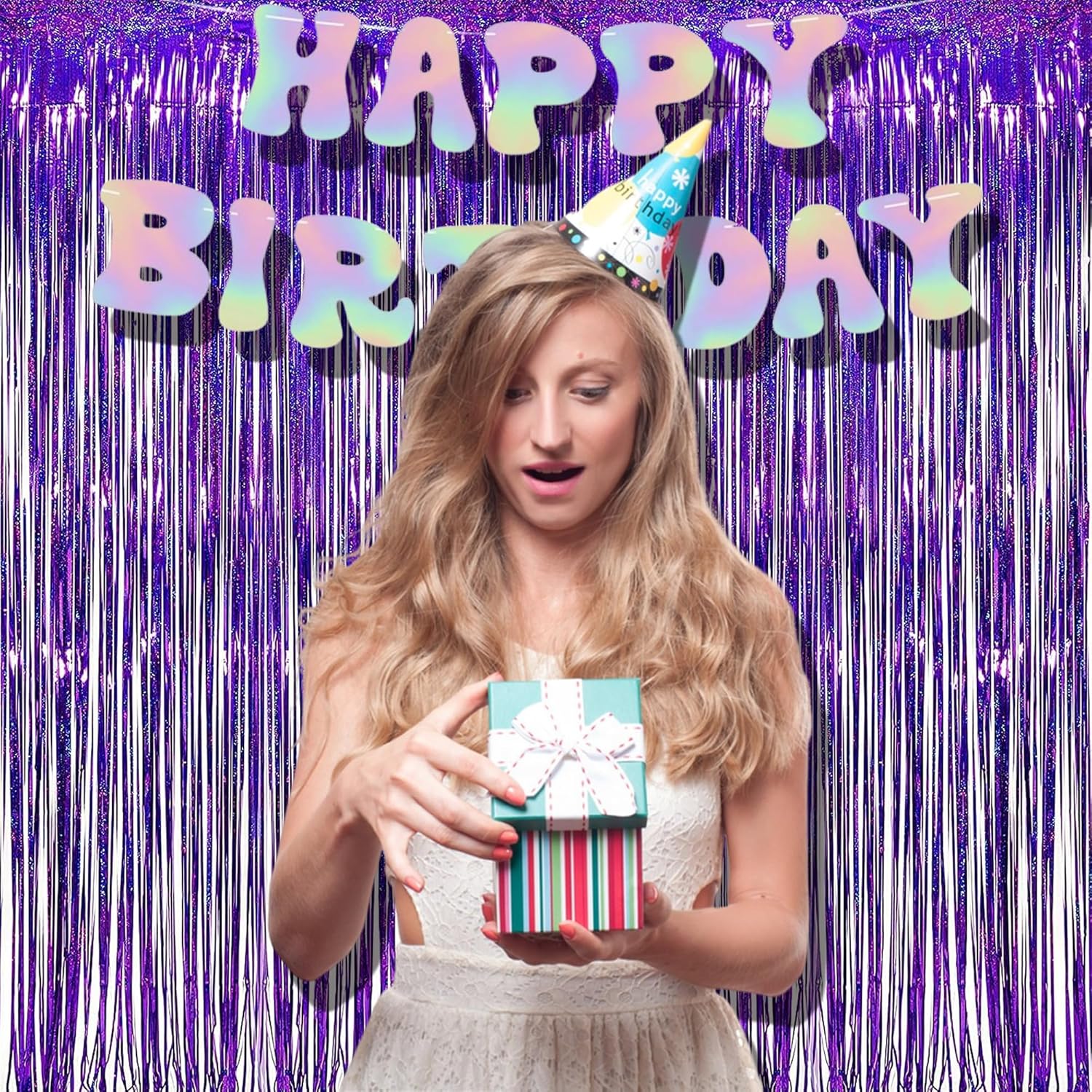 BRAVESHINE Purple Tinsel Foil Fringe Curtains - 2Pcs 3.2x8.2ft Metallic Holidays Photo Backdrop for Halloweens Birthdays Valentine's Bridal Shower Bachelorette Anniversary Engagement Party Supplies