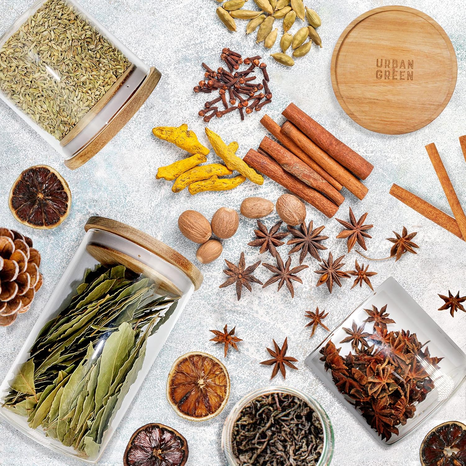 - ✅ PREMIUM BOROSILICATE GLASS & WOOD LID: Urban Green glass canisters are made of high-quality borosilicate glass with smooth and beautifully fine polished Wood Lids in set of 6 Pack. Our Wood lids are made of Acacia Wood, they are strong, durable, and classic looking. The non-reactive clear glass resists stains, food adores, it is nonporous, worry free of germs, or even smells seeping into your glass containers. Make heathy products a part of your everyday life!