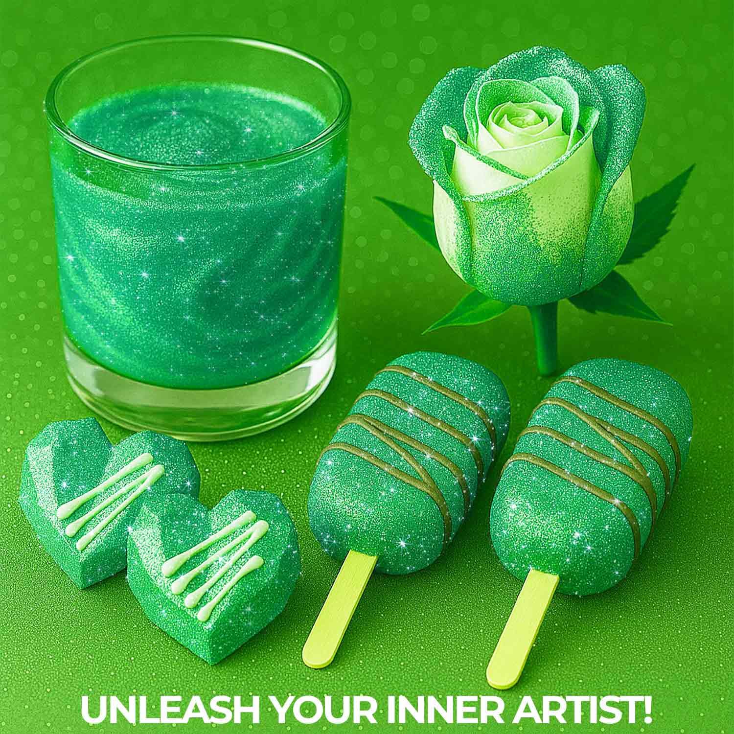 - 𝗢𝗩𝗘𝗥 𝟮𝟬 𝗩𝗜𝗕𝗥𝗔𝗡𝗧 𝗠𝗘𝗧𝗔𝗟𝗟𝗜𝗖 𝗖𝗢𝗟𝗢𝗥𝗦 𝗧𝗢 𝗖𝗛𝗢𝗢𝗦𝗘 𝗙𝗥𝗢𝗠 Enhance your cake decorations with our edible green glitter including red, pink silver and more. Our edible glitter is perfect for themed parties, holidays and special occasions and is trusted by professionals.