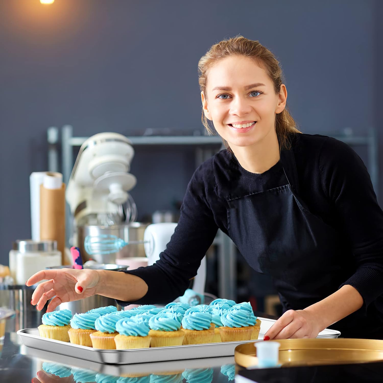 - 🎀 [ENJOY HEALTHY BAKING] Deedro baking sheets and baking racks are constructed with pure stainless steel without any toxic substance or chemical coating, PTFE, PFOA, BPA and rust free. You needn't worry about coating flaking off or noxious material leaching into your food, great substitution of aluminum pan, healthy and safe for daily use.