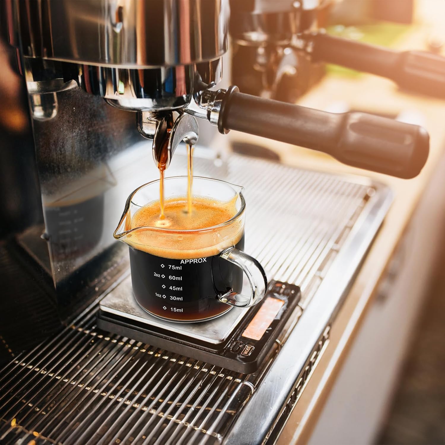 Yarlung 4 Pack Measuring Cups Espresso Shot Glasses, Double Spouts Espresso Cup Glass Graduated 75 ML/ 2.5 OZ for Milk Pitcher, Coffee Maker Accessories
