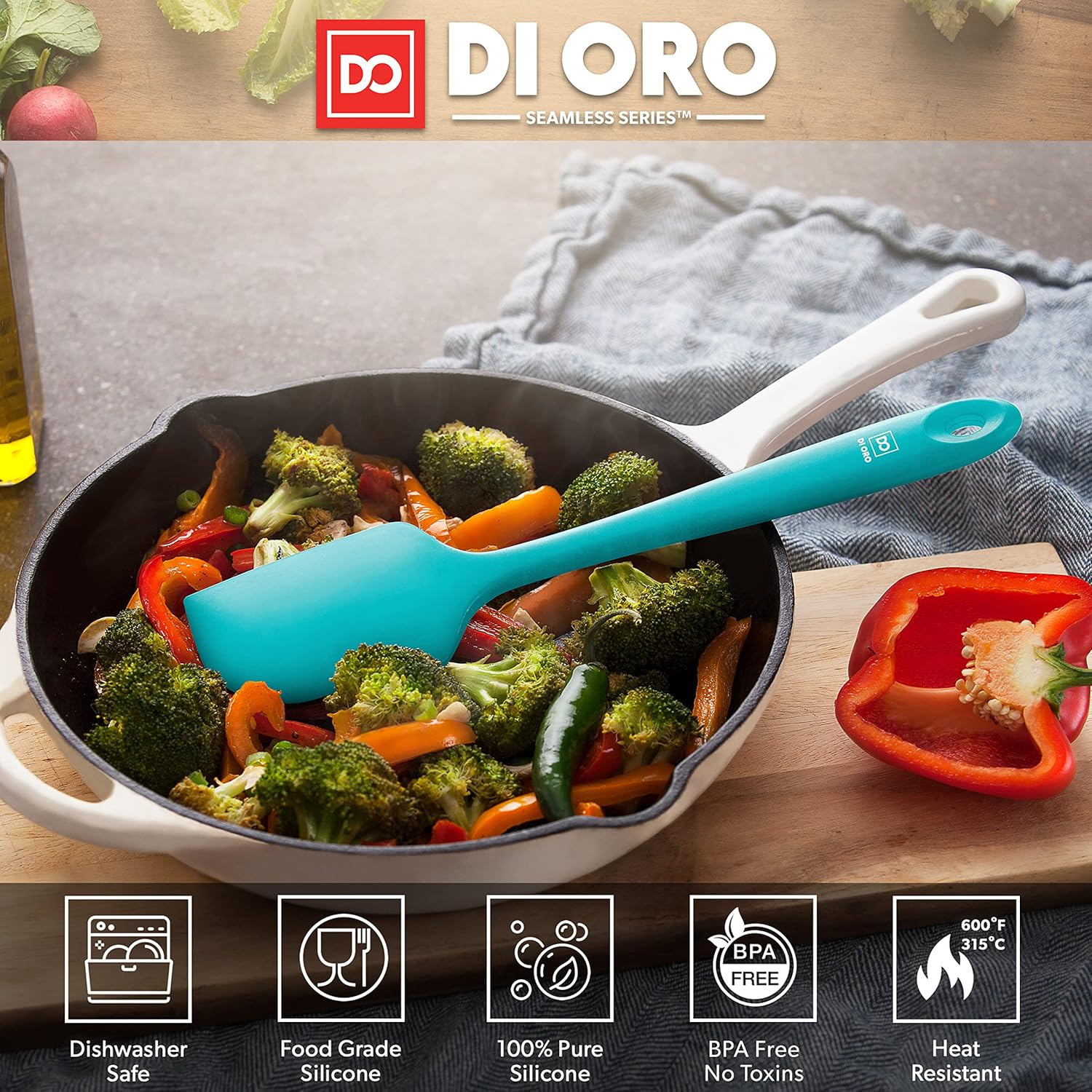 DI ORO Silicone Spatula - 600°F Heat-Resistant Rubber Kitchen Spatula for Baking, Scraping, & Mixing - BPA Free Nonstick Cookware Safe Flexible Utensil for Cooking - Seamless & Dishwasher Safe (Teal)