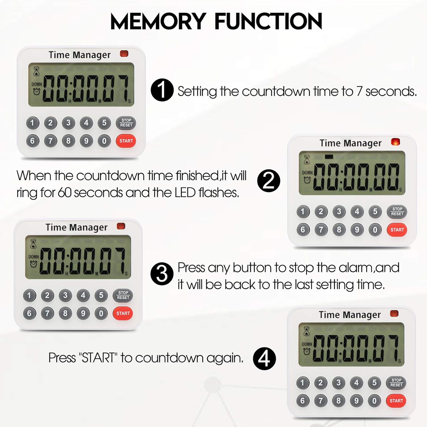 - [ Wide Range of Times] - This digital kitchen timer goes up to 99 hours, 99 minutes, and 99 seconds. This makes it practical when roasting a turkey in the oven or for setting a reminder to do something hours later in the day.