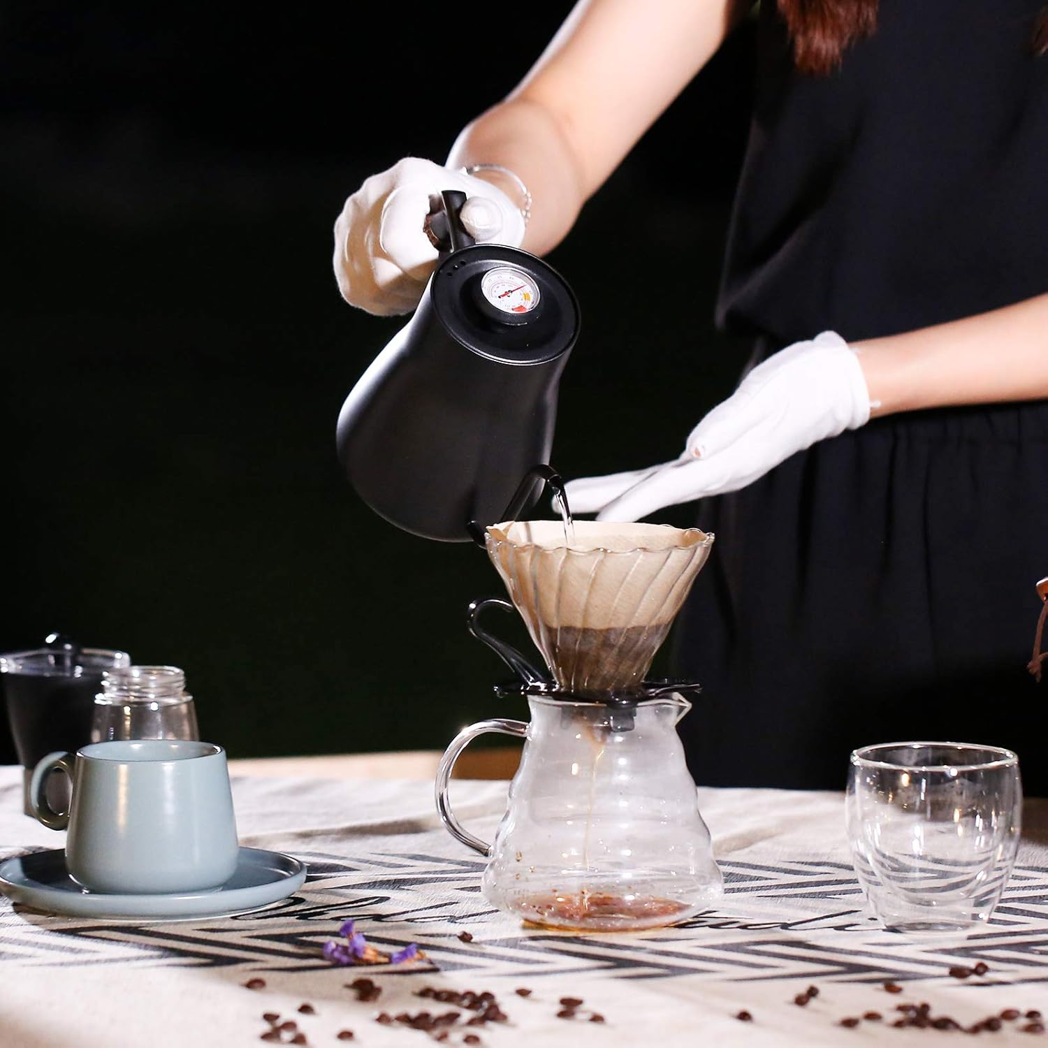 - All in 1: V60 Glass Dripper, clear - V60 heat-resistance Ceramic Carafe Service Jug 600 ml, 40 Filter Papers, Kettle with thermometer 850ml, Smart scale with timer, Barista space grinder, Heat Isolated Glass coffee mug.