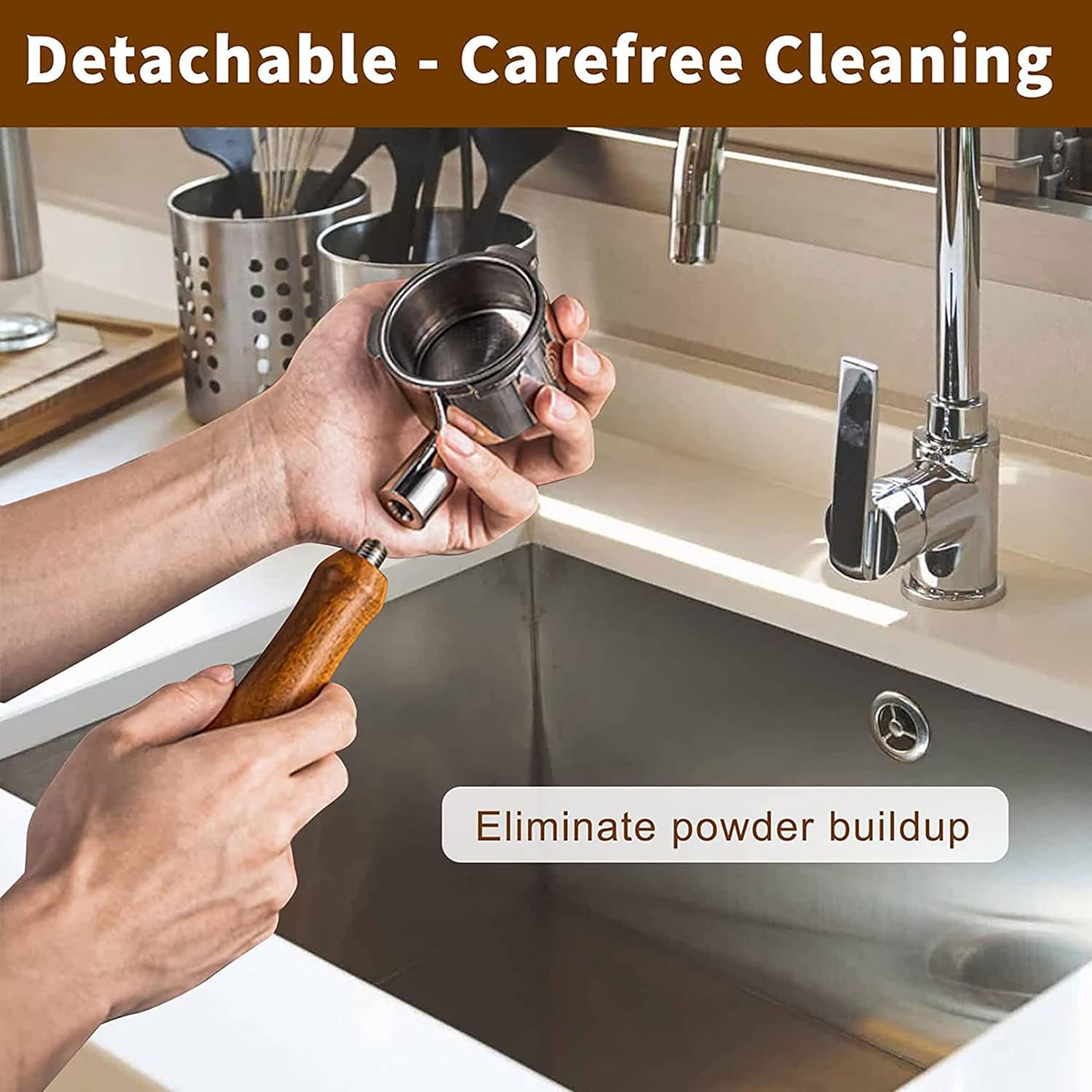 - 【Ergonomics and movable design】 Eitonbu Coffee Bottomless Portafilter solid wood handle in line with ergonomics design can provide comfortable grip and stable operation; it can be disassembled at will as a replacement part of the coffee machine. Easy to use, easy to clean and no dead corner
