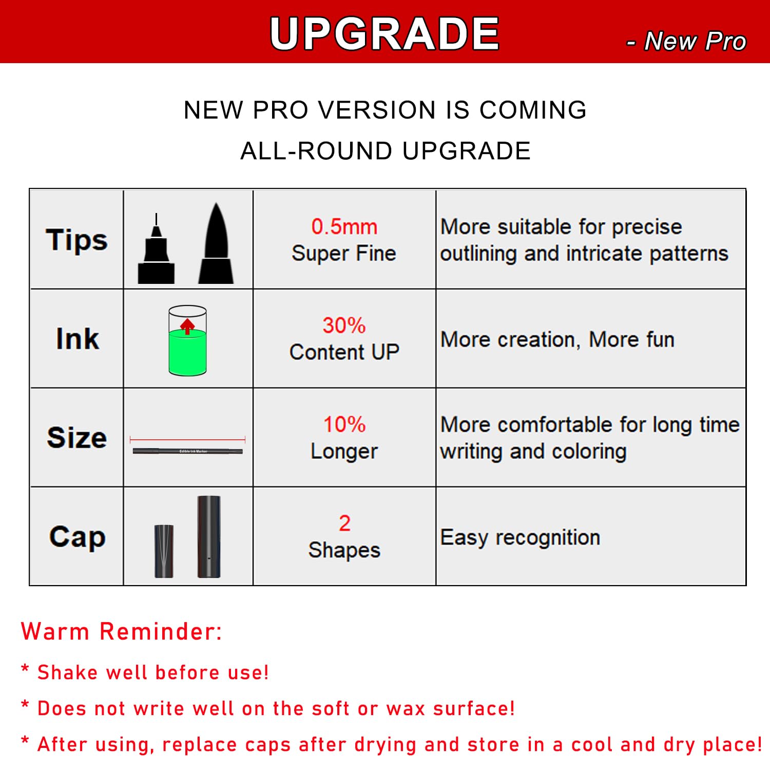 - Specialty : Bright Color, Easy Use, Safe Edible Ink, Super Thin Nib(0.5mm) and Flexible Thick Nib!, Valuable PackBright Color, Easy Use, Safe Edible Ink, Super Thin Nib(0.5mm) and Flexible Thick Nib!, Valuable Pack See more
