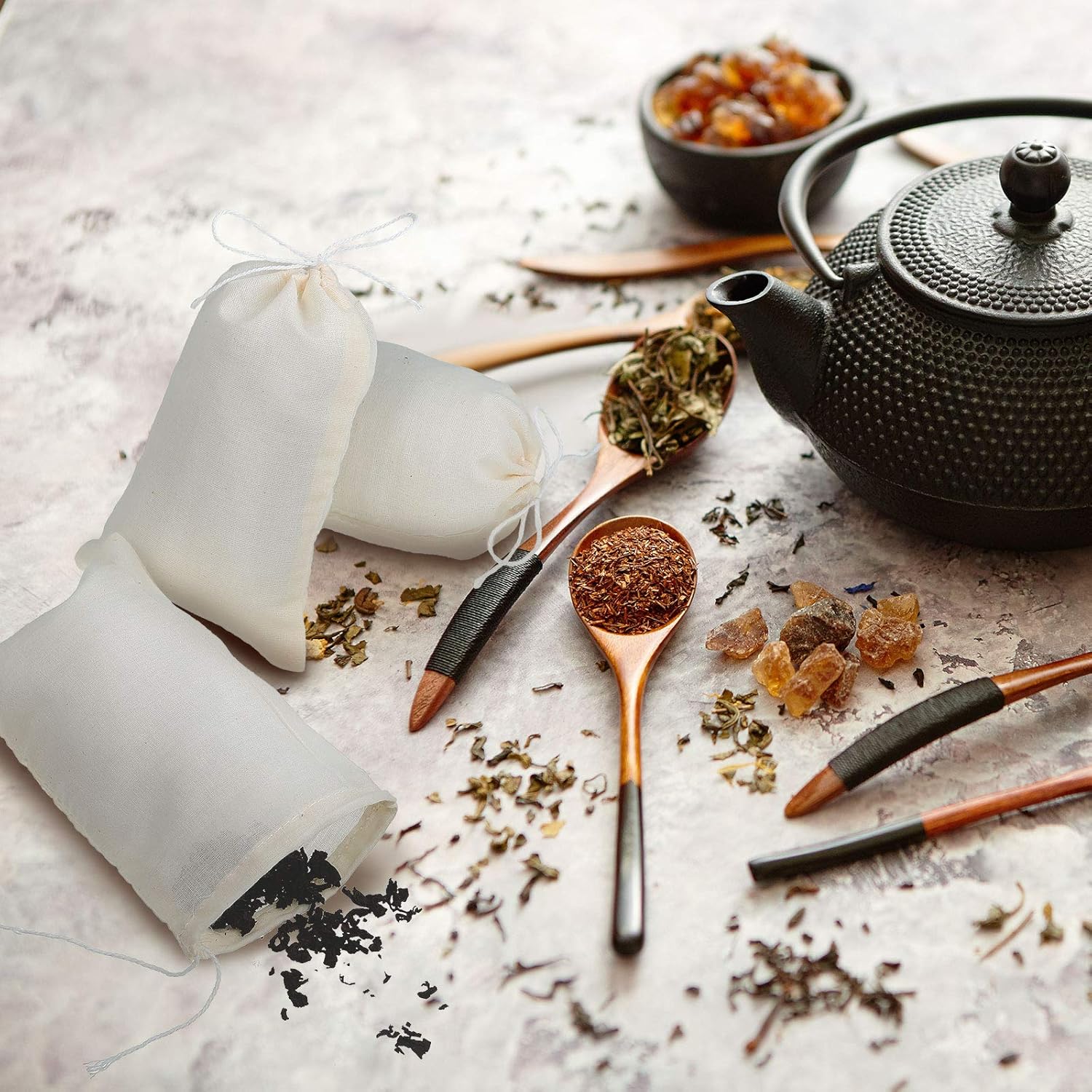 - Mesh design with drawstring: our cotton muslin bags are designed with fine mesh, which allow liquids to pass through but leave no particulates, debris or solids, each bag is equipped with a drawstring on the top, easy to use, just pull the drawstring to close the top, then the tea bag is bunched at the top, so tea leaves will not leak out, and will not be in a mess in the cup