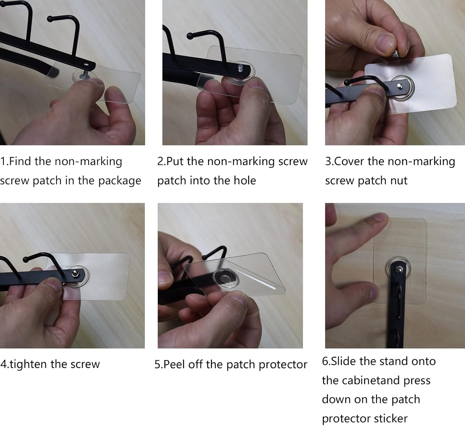 - Every Cabinet Mug Holder hooks package are include sag protection accessories,the adhesive with the screw help fix the end of hook under cabinet, which avoid hook stretch down due to the cup weight. No drilling Free Damage.