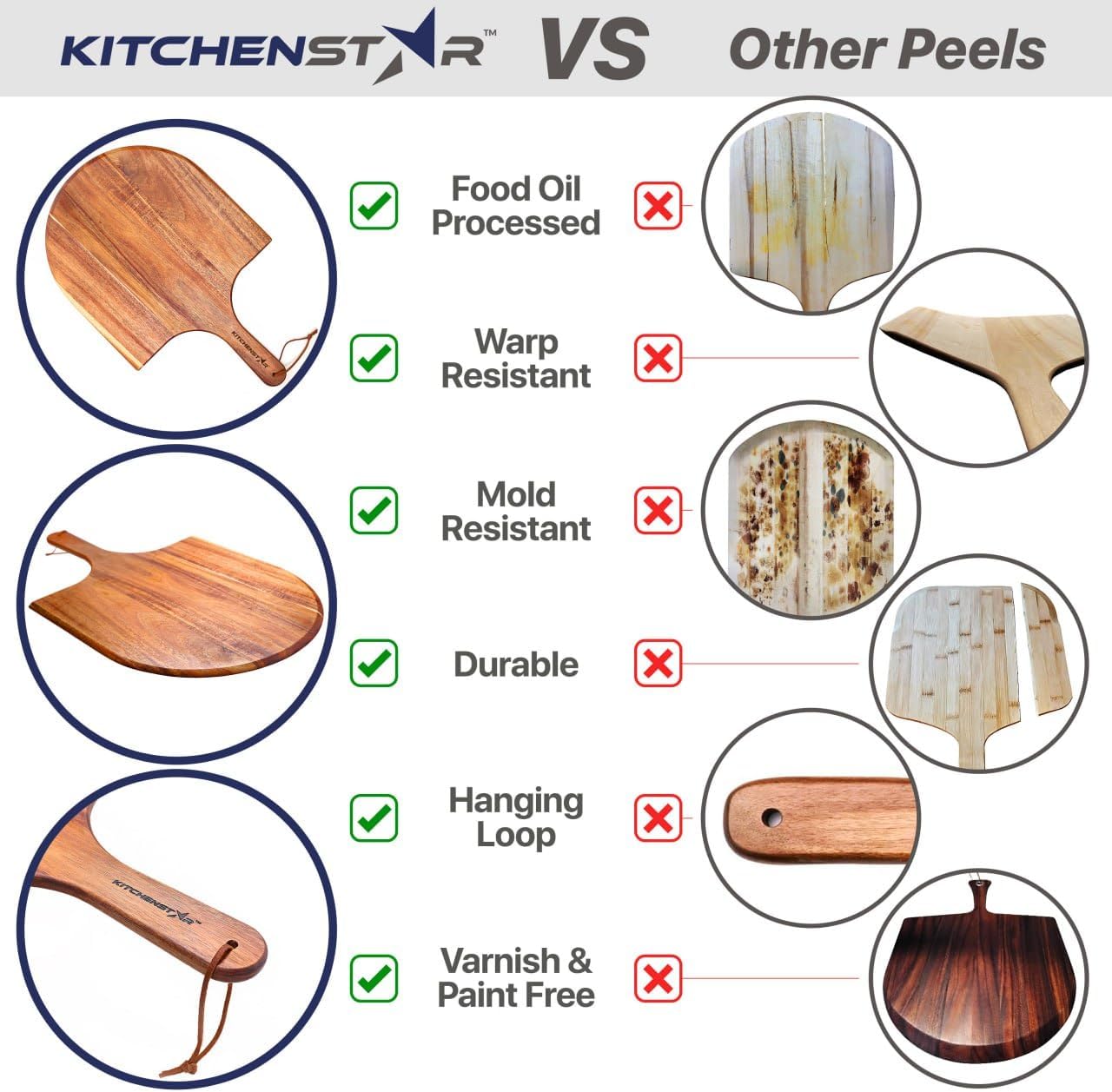 KitchenStar 12-Inch Acacia Wood Pizza Peel – Wooden Cutting & Serving Board with Handle & Hanging Loop – Natural Oil Finish – Ideal Pizza Oven Accessory for Easy Sliding & Prep