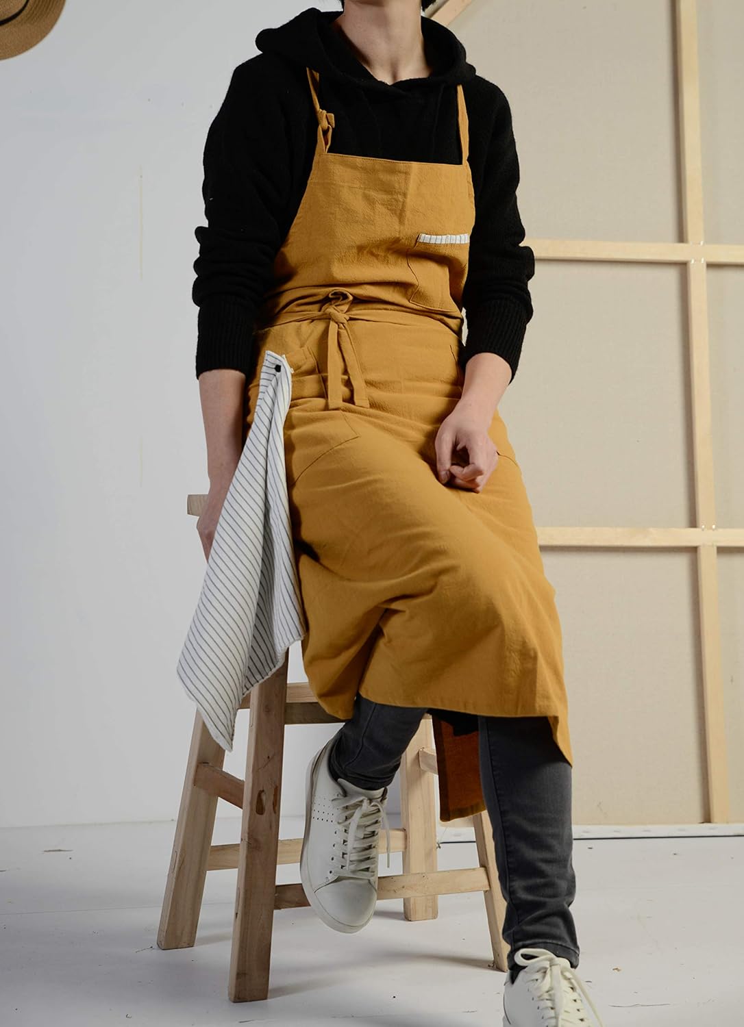 Adjustable Japan Nordic Style Soft Cotton Linen Apron with Four Pockets A Towel