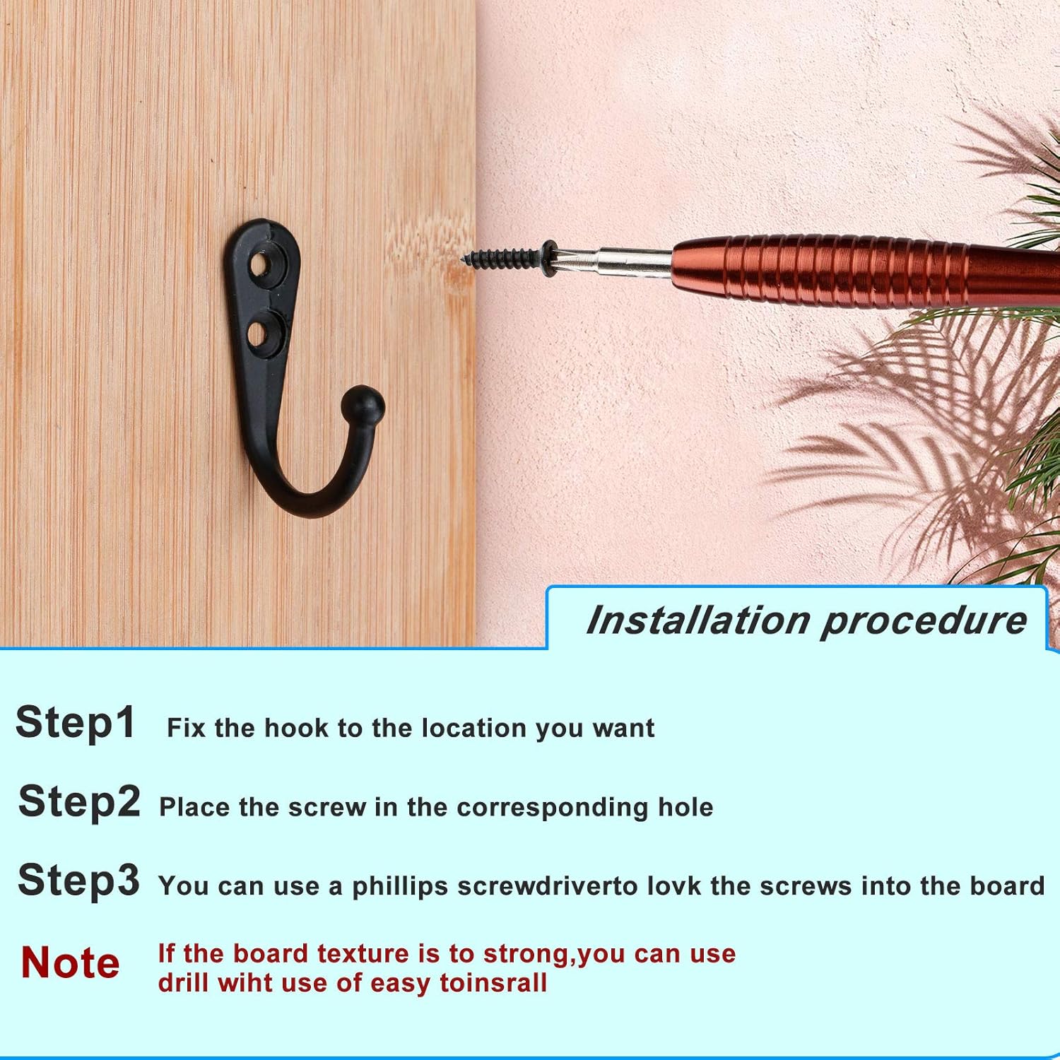 - Material:The Coat Hooks not easy to break, anti-rust and anti-corrosion, The Coat hooks are made of zinc alloy and the screws are made of iron, which is hard and durable