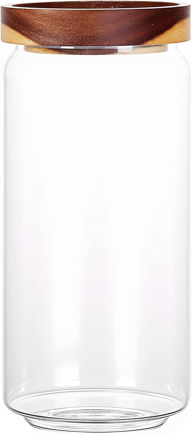 960ML/32Oz Clear Cute Glass Storage Canister Holder with Stackable Airtight Wood Lid, Modern Decorative Container Jar for Coffee, Spice, Candy, Salt, Cookie, Condiment, Pepper, Sugar