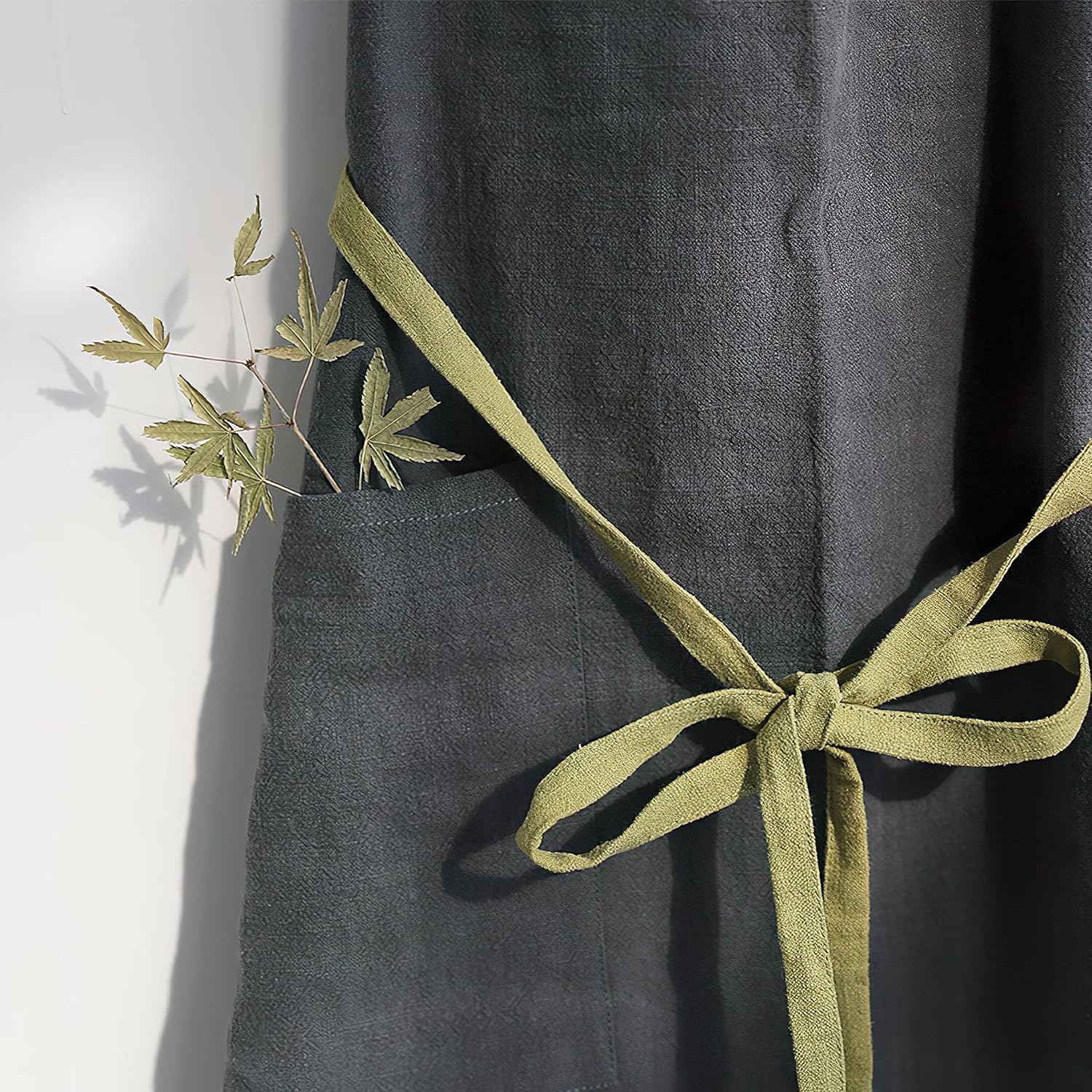 HANEE Kitchen Apron for Women & Men (9 Colors) Linen Cooking Aprons with pocket