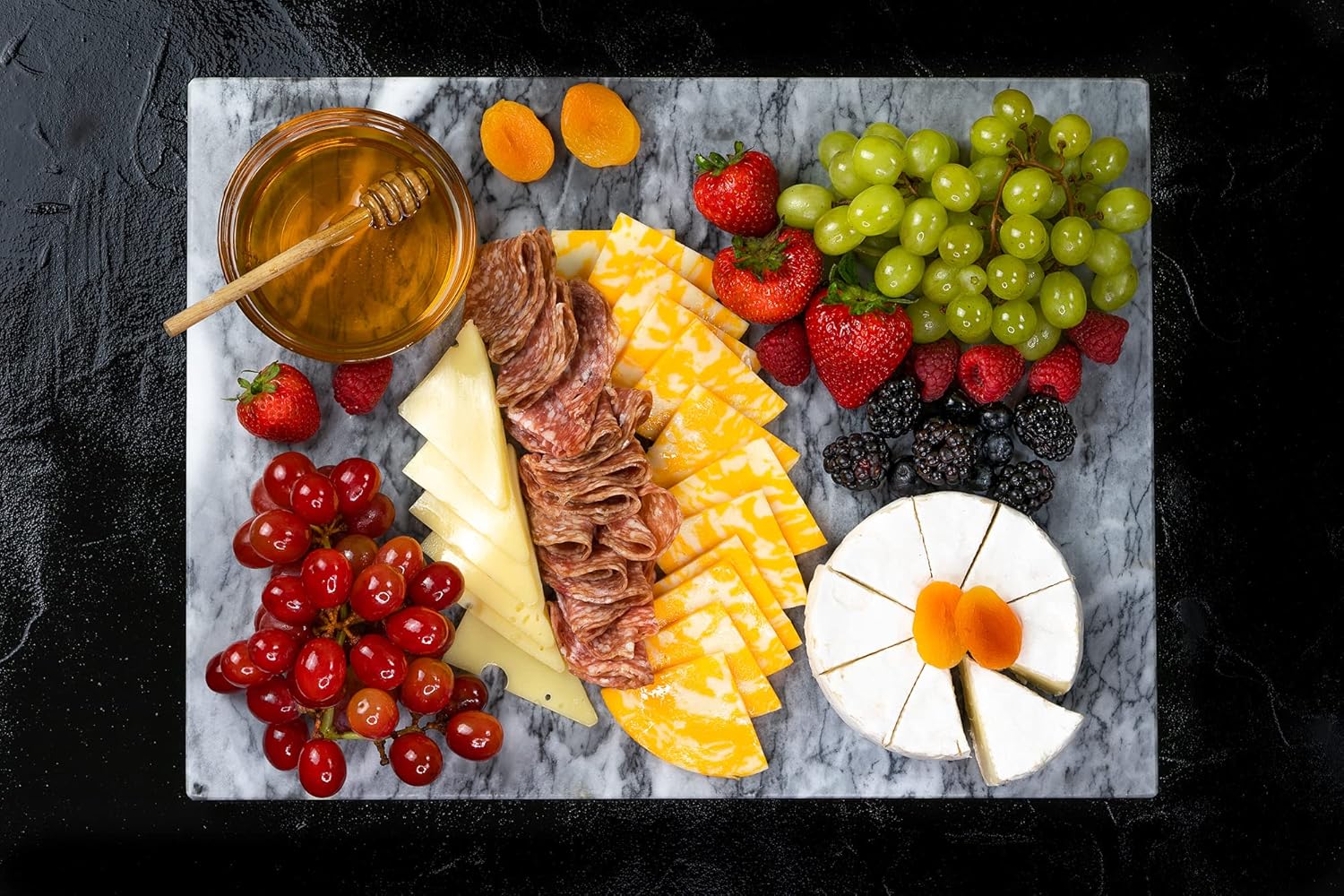 - Non-Slip Rubber Feet for Stability Marble board includes rubber feet that protect your countertop and keep the slab secure during rolling or serving.
