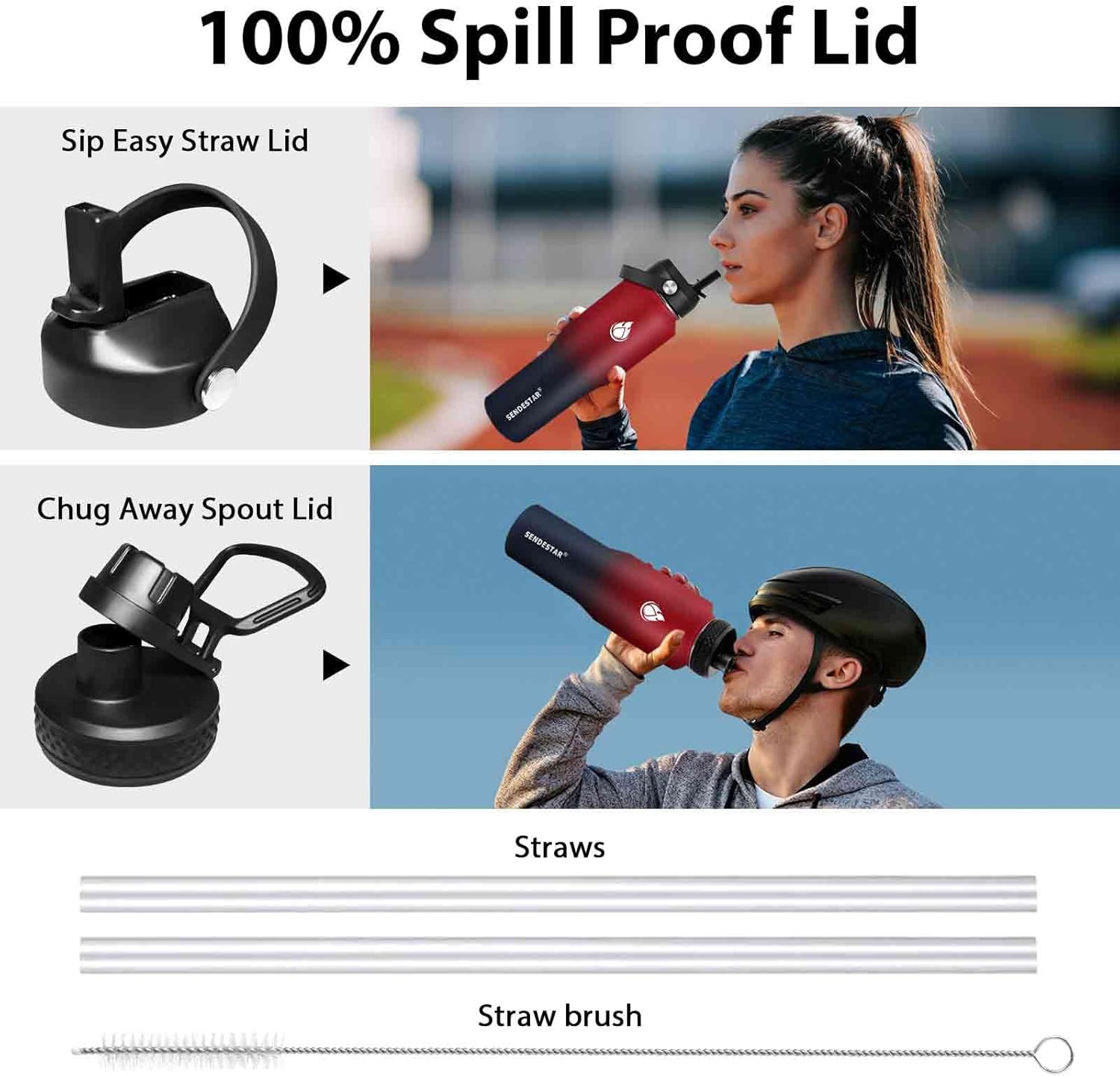 - 【TWO DIFFERENT DRINKING WAYS】Yes,SENDESTAR 32oz slim water bottle comes with TWO diffrent BPA-free lids can be switched at any time.Flexible straw lid with wide rotating handle makes drinking easier and more convenient.Wide handle spout lid is perfect for beach, camping,hiking,bicycling.This universal lids are also compatible with Hydro Flask, Takeya, HYDRO CELL and most wide mouth bottles.