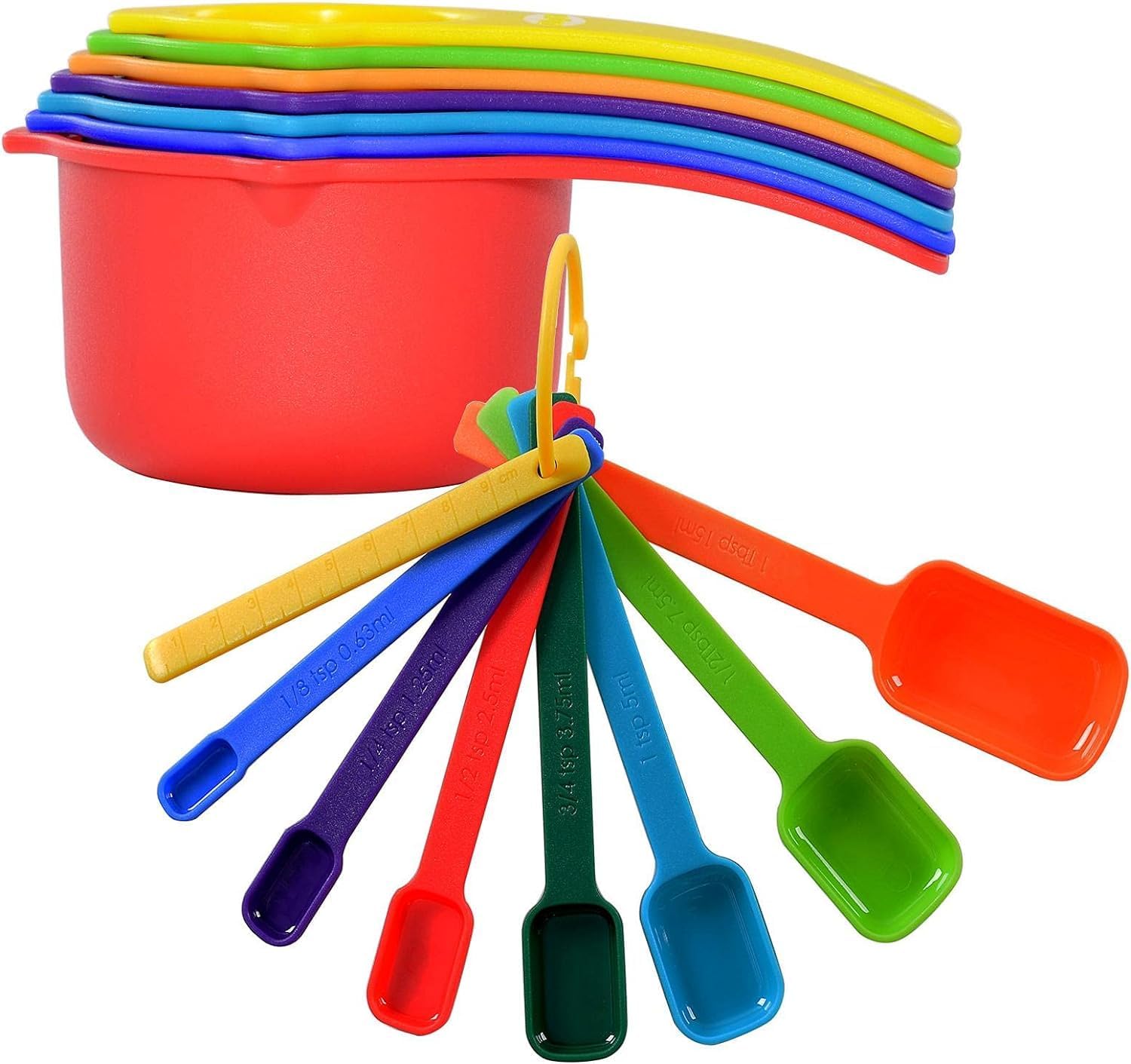 Measuring Cups and Spoons Set of 15,Assorted Colors