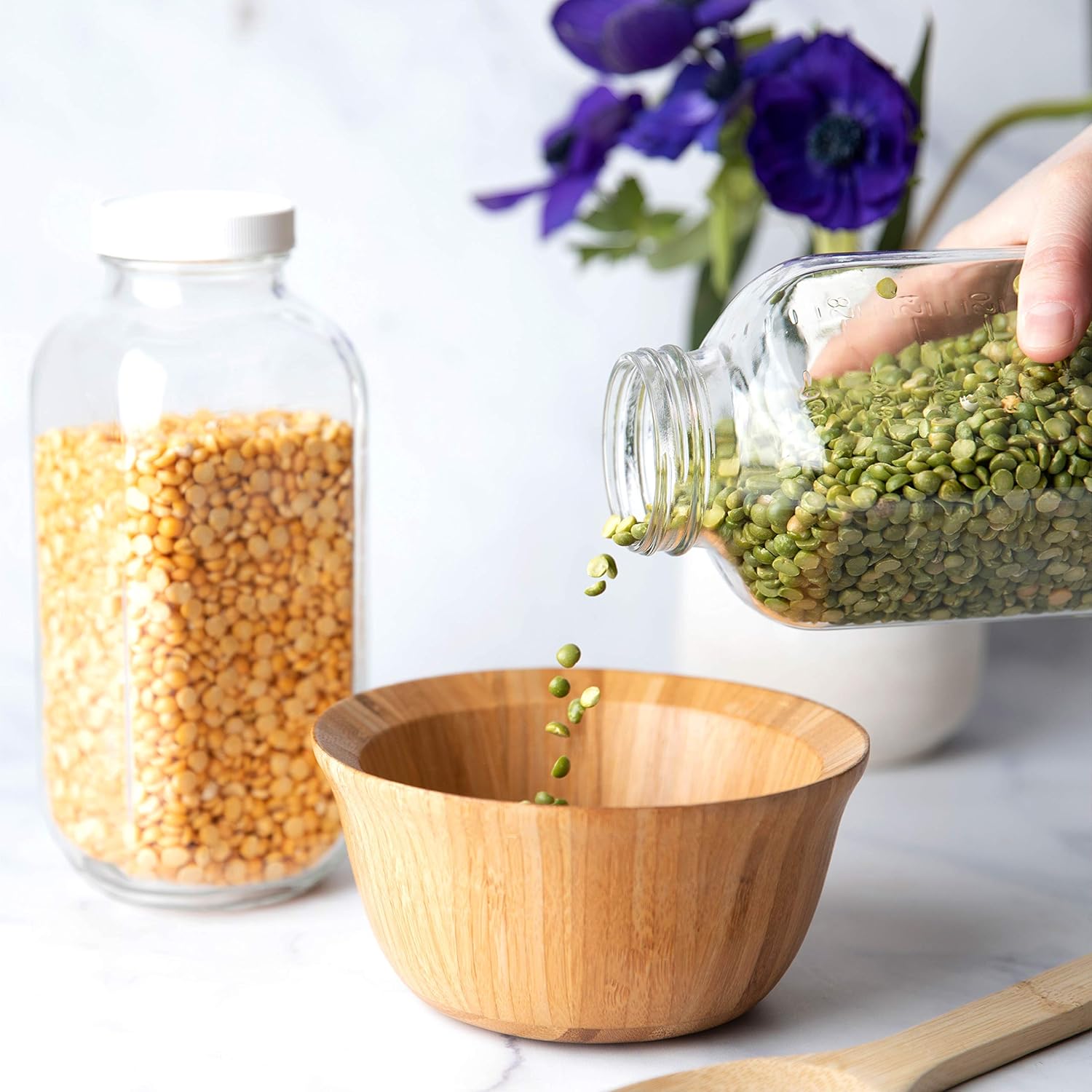 - Set includes 4 clear 32 oz glass bottles with white plastic airtight lids