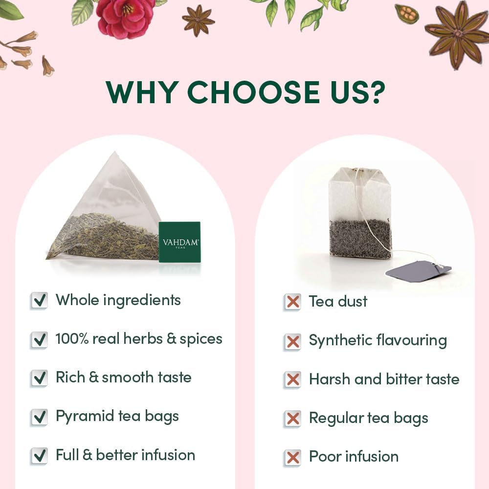 VAHDAM, Assorted Chai Tea Variety Pack (6 Delicious Flavors, 36 Eco Friendly Pyramid Tea Bags) Caffeinated, Gluten Free, Non GMO | Indian Masala Chai Tea Blends | Tea Gift Sets for Men and Women