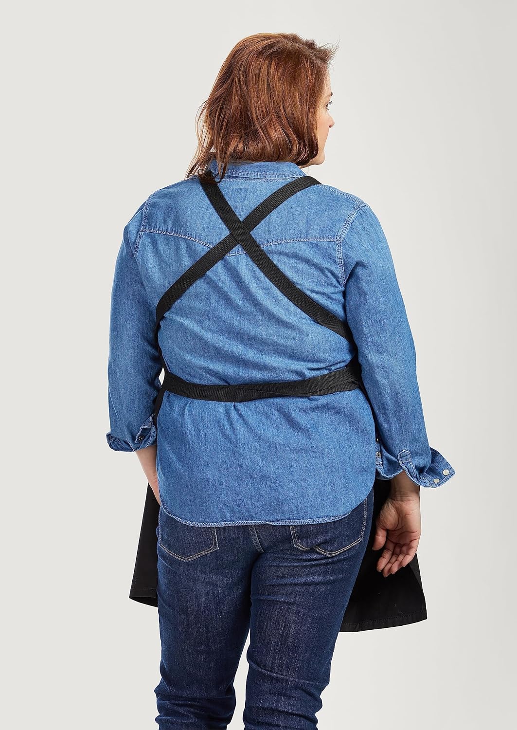 - STAY STAIN-FREE: Don't ruin your favorite clothes in the kitchen -- keep clean with this protective bib apron and be more comfortable with the crossback strap design.