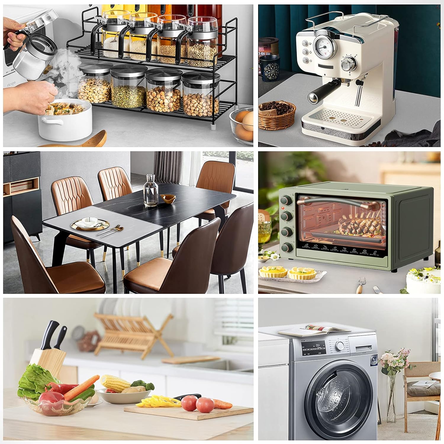 - You Can’t Go Wrong with It: This placemat can solve multiple problems. Great for catching messes. Protect counters from spills, scratches, grease, coffee stains, or damage. Place hot items of all sizes directly on the mat without having to dig through the drawer for a hot pad and no more need for trivets. Reduce the noises made by appliances. No need to worry about items slipping off the countertop. Tools will keep in place. Even if you are rolling dough hard on it, the mat won't slide