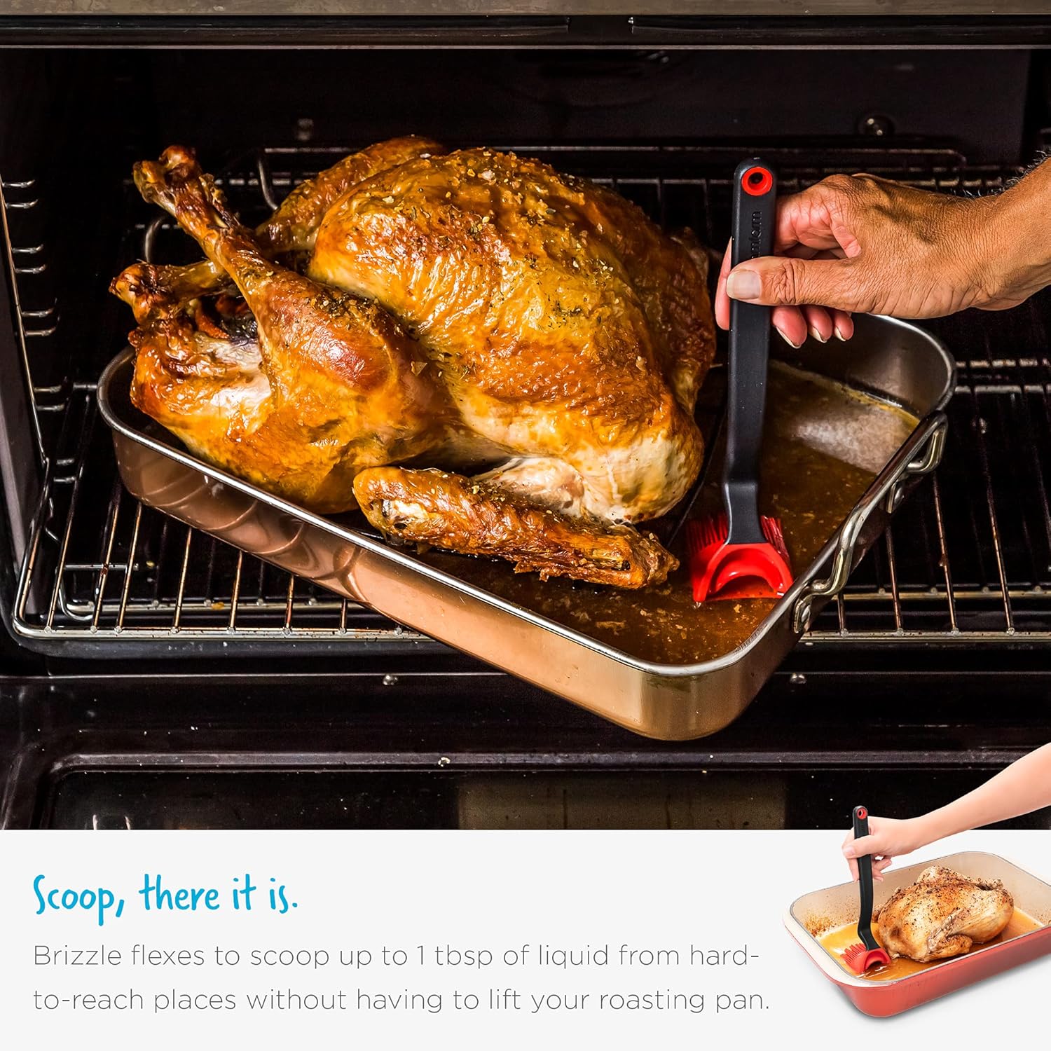 Dreamfarm Brizzle 3-In-1 Flexible Silicone Sit-Up Basting, Drizzle, Scooping Brush with In-Built Sauce Resevoir - Red