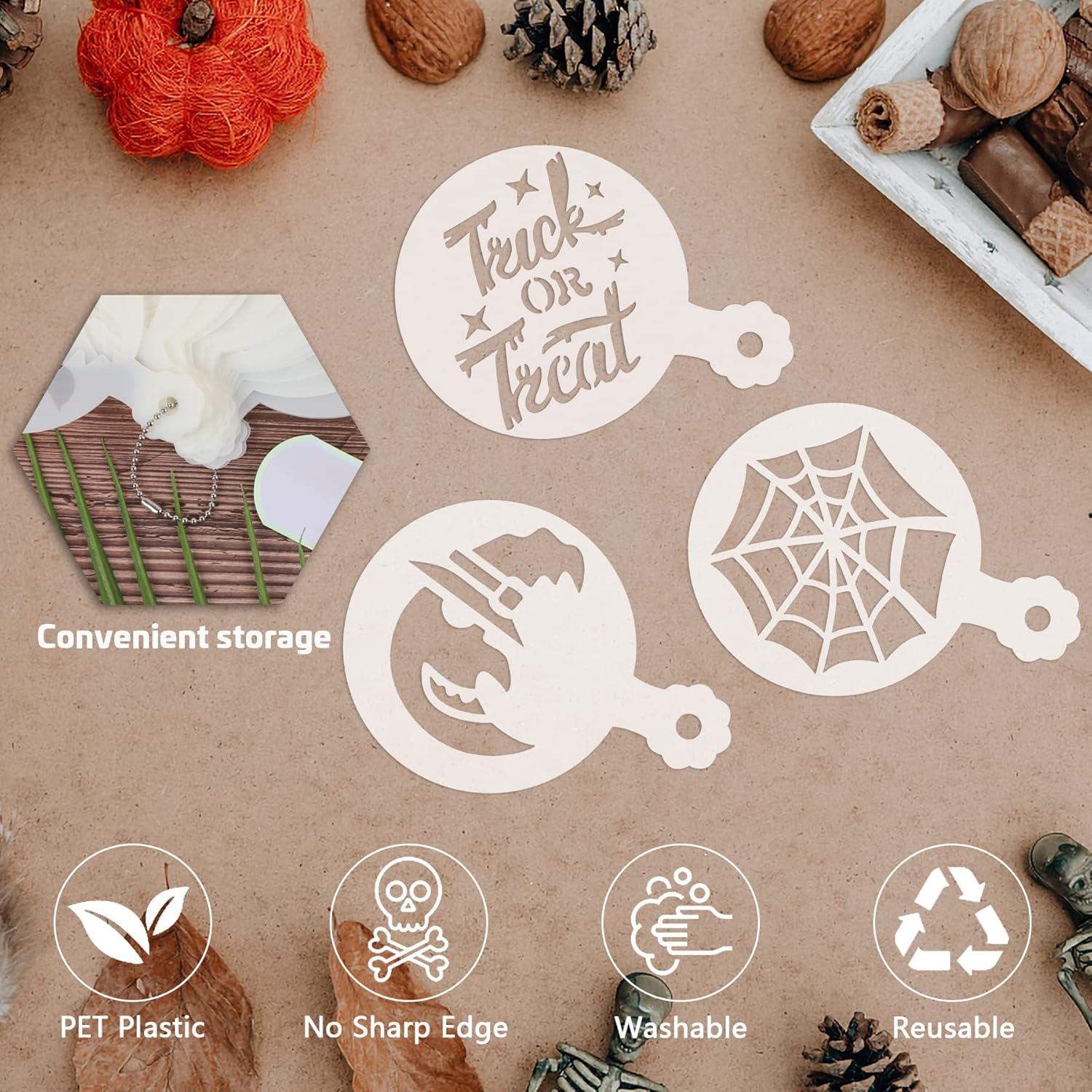 JULBEAR 36 Pieces Reusable Halloween Cake Cookie Stencils Templates Mold Tools for Cookies DIY Holiday Baking Painting Dessert Craft Coffee Decoration