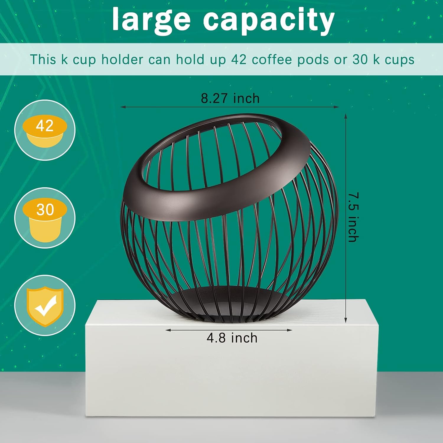 - Large capacity and space saving: the cup holder is about 8.3 x 7.5 inch, holds 30 coffee cups, 42 pods, or more than 100 original capsules; Large capacity with small footprint, adding elegant decorations to your counter bar