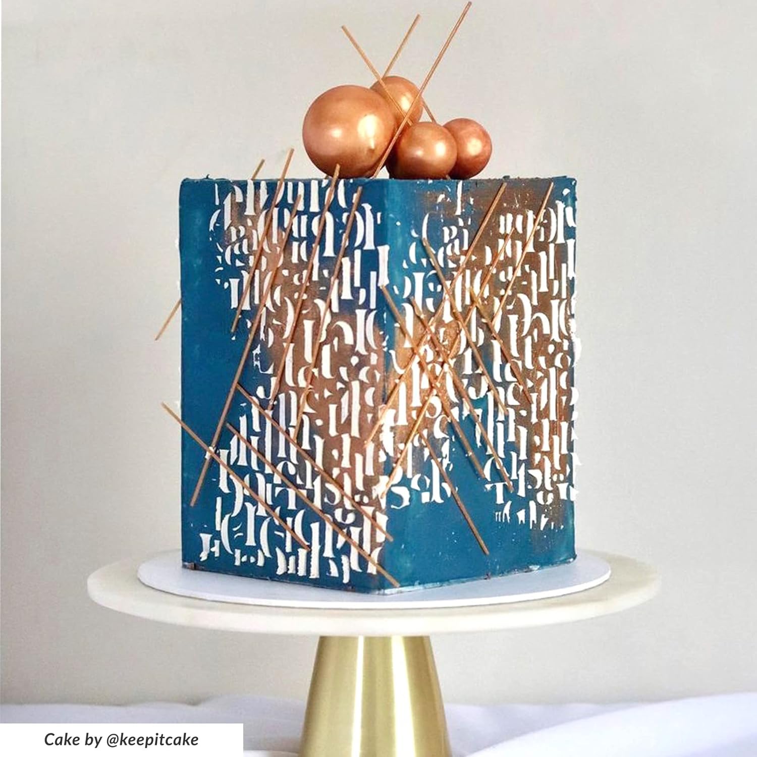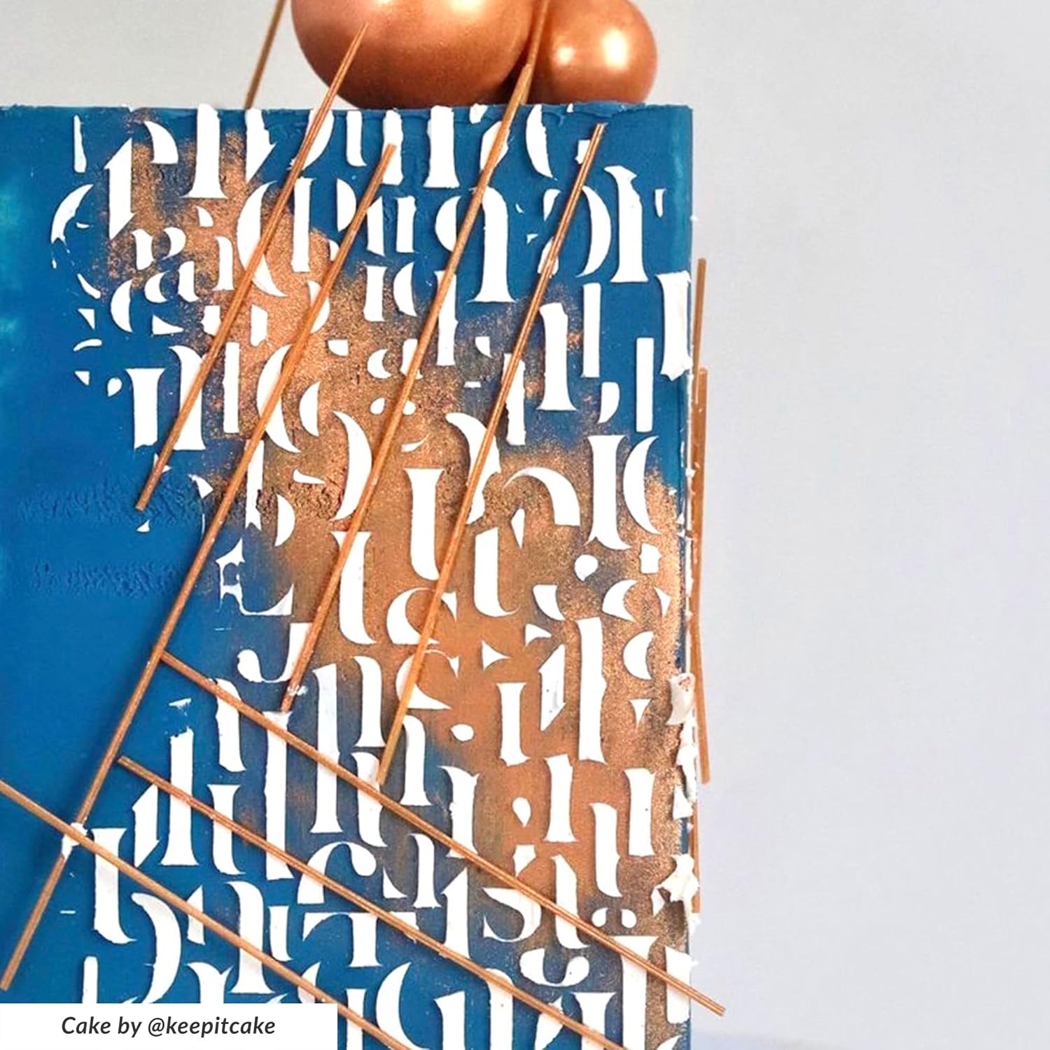Alphabet Cake Stencil - Seamless Delicate Pattern for Decorating Tall Double Barrel Cake to Use with Buttercream, Royal Icing, Ganache, Paint, Airbrush (TULIS)