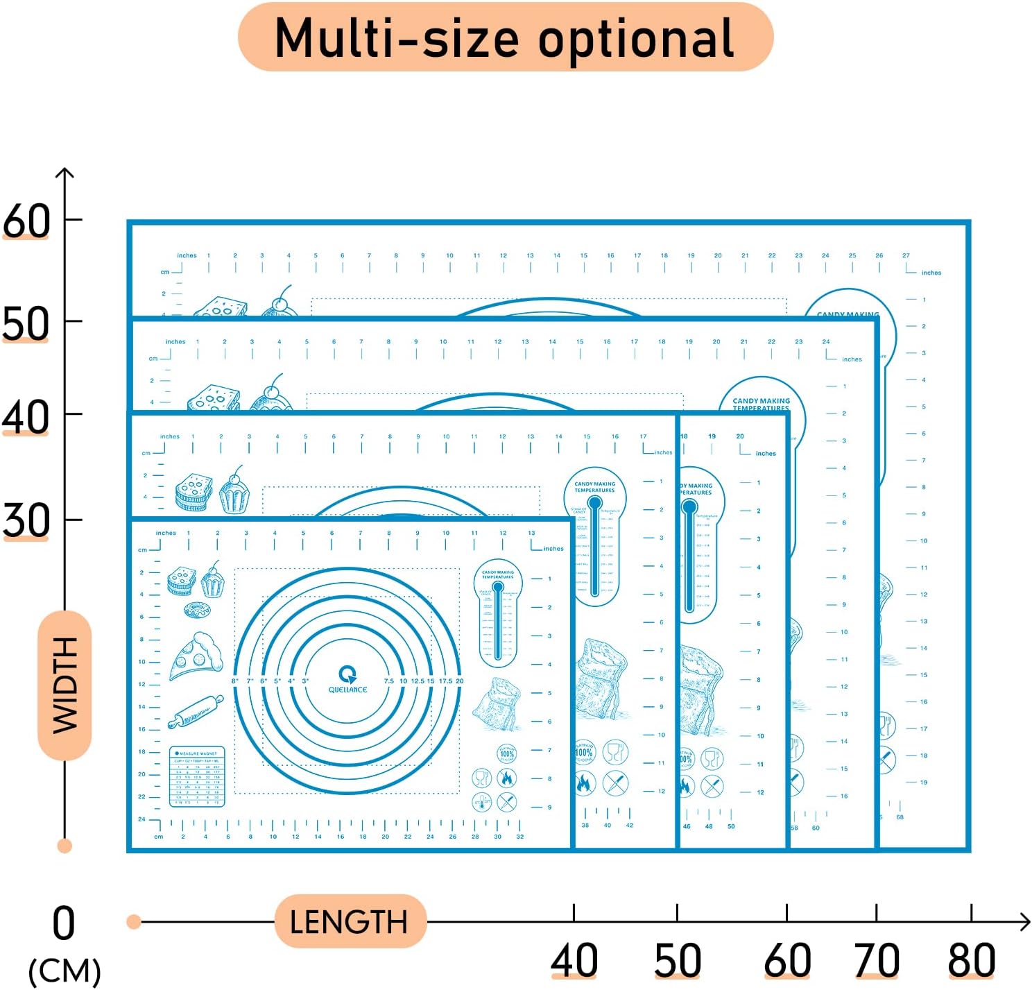 - NON-STICK SURFACE: Do not need to use extra flour or oil, this large nonstick sheet keeps work surfaces clean so you don’t have to spend hours scraping the dried dough off your counter-tops ! Even if grease or dough sticks to the surface, pastry mat can be easily cleaned to keep countertop clean and sanitary.