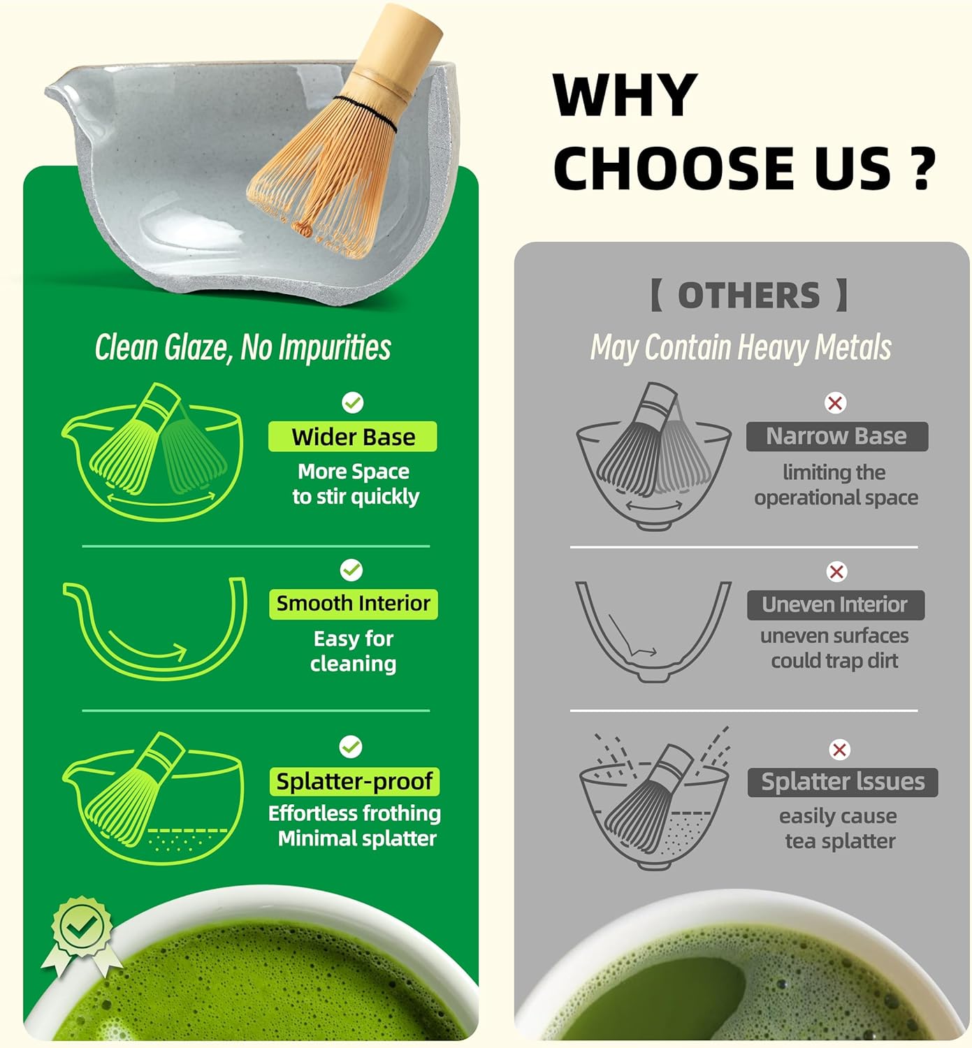 - HIGH SAFETY & QUALITY: Our Handcraft Matcha Whisk, About 100 Fine Tines(百本立),100% Crafted From High Quality Bamboo With A Vegetable Oil Finish To Enhance Its Durability. Additionally, Our Ceramic Bowl Has Lead-free And Mercury-free Test Reports.food-grade And Eco-friendly