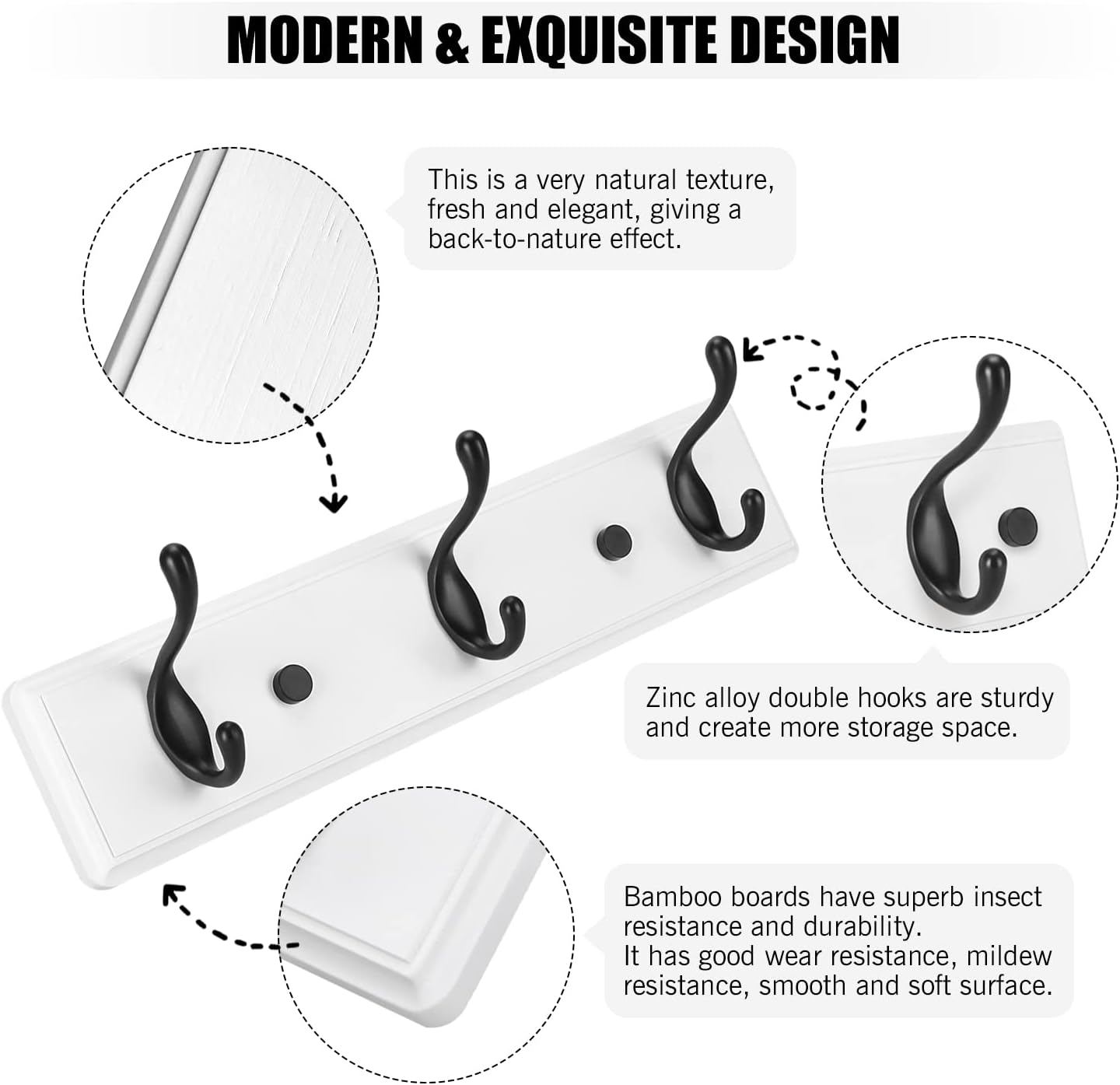 Wooden Coat Rack, Wall-Mounted Organizer for Closet, Entryway, Hallway, Foyer, Bedroom, Heavy Duty Double Hooks for Hanging Towels, Bags, Hats, Jackets, Key (WhiteBlack, 3 Hooks)