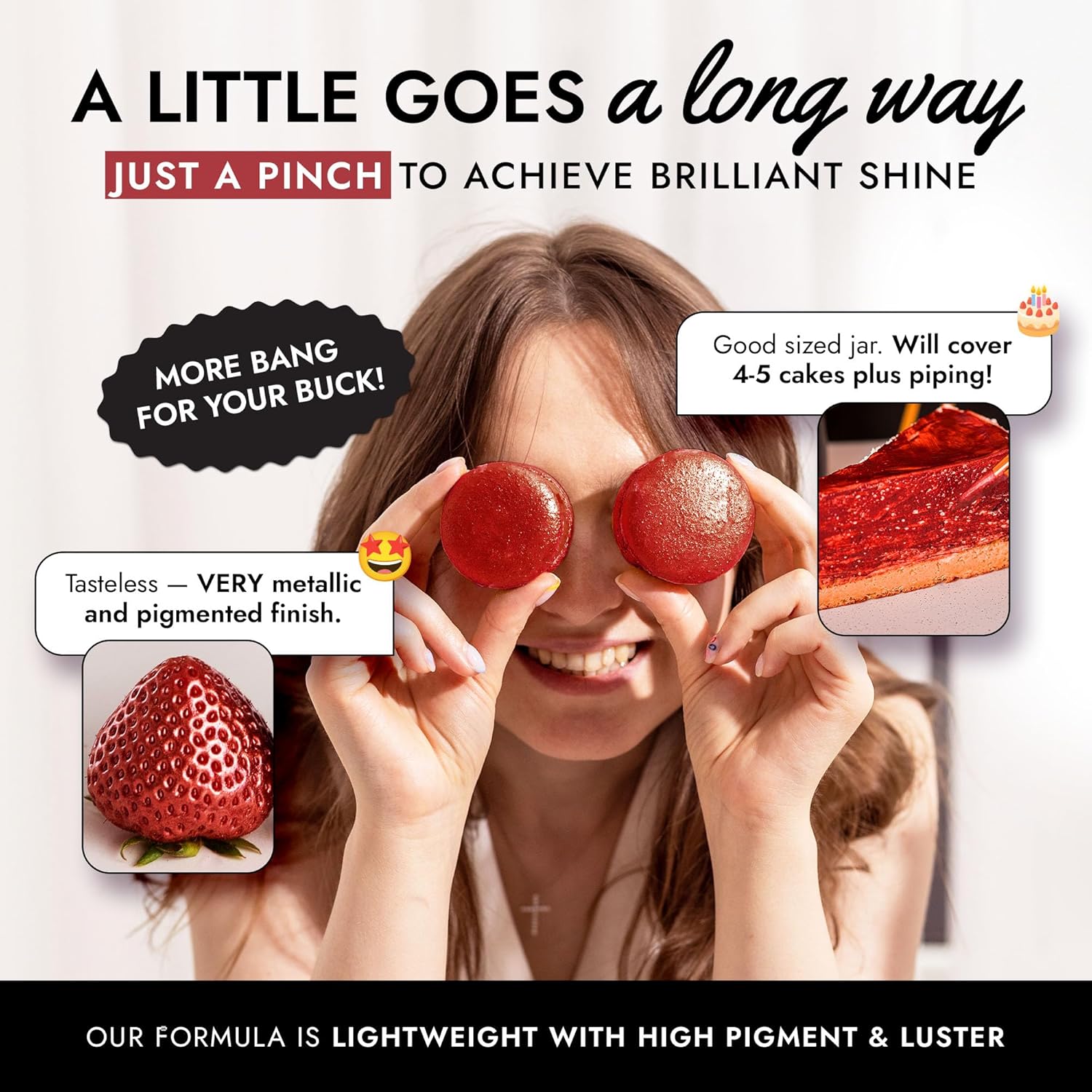 - EASY TO USE: Our burgundy luster dust is incredibly versatile. Apply with a wet brush, airbrush, or dry brush, and even mix into beverages. Achieve professional-looking results effortlessly at home, whether decorating halloween cakes or adding shimmer to cocktails.