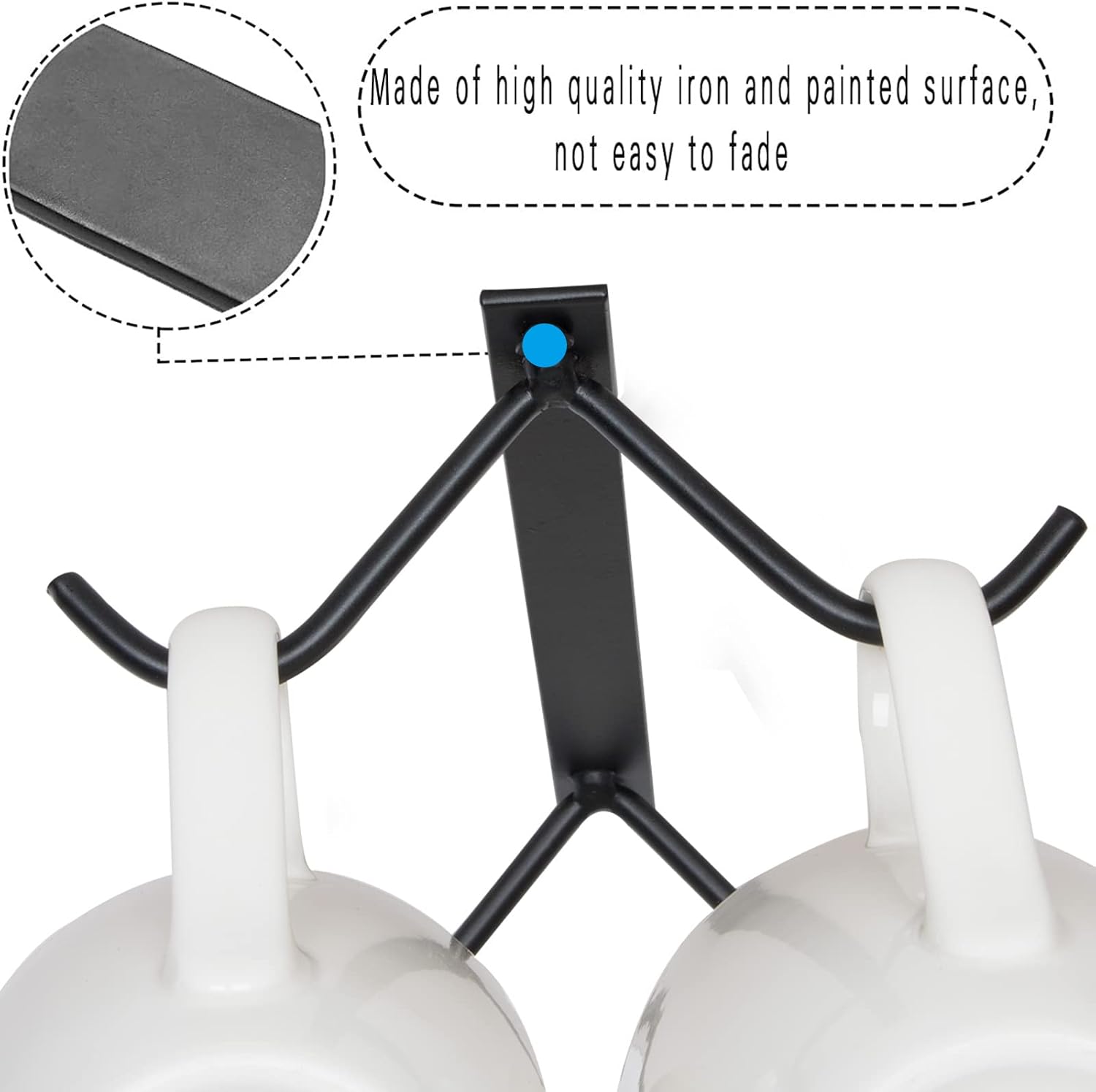 Cabinet Hook Mug Holder - Hanging Coffee Cup Rack for Kitchen, Under Cabinets Metal Hangers Organizer Shelf Storage Utensil (Black)
