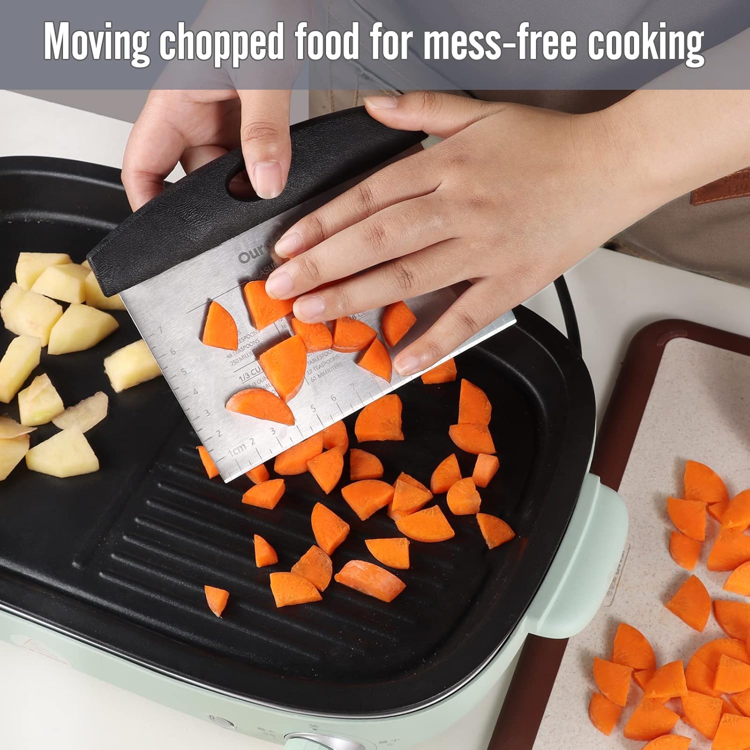 - Multipurpose dough scraper: Whether you’re dividing pastry dough, slicing pizza, chopping even the hard veggies, smoothing cake, or scooping up chopped veggies from the board, it can complete tasks like a charm