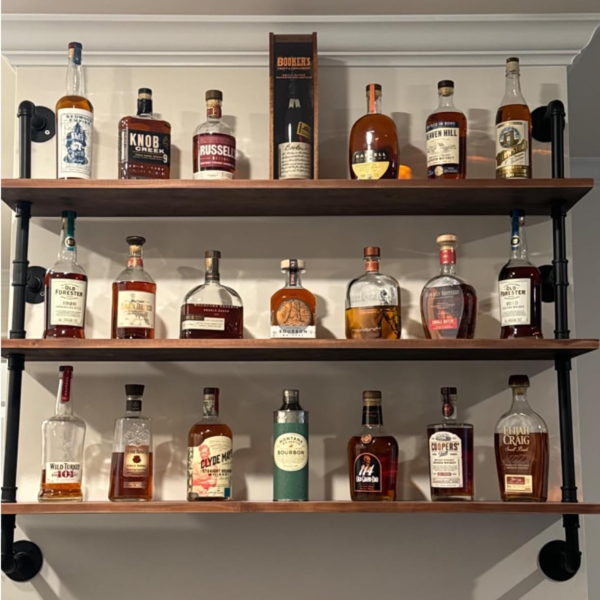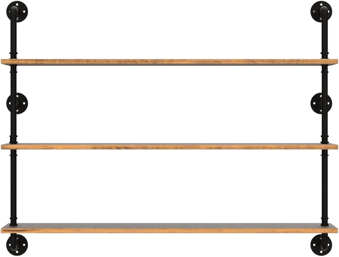 - 【Black metal pipe and solid wood 】Good rustic look solid wood industrial shelves with black metal pipes.The tubing is all metal and has a very rustic finish and the wood is a solid piece. This industrial pipe shelving is very very stable and solid on the wall,Fits right in with Your farmhouse vibe.