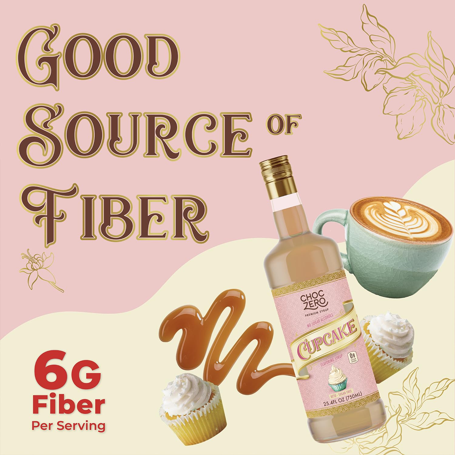 ChocZero Sugar Free Coffee Syrup, Cupcake Flavor, No Sucralose Simple Syrup Drink Mix, Birthday Cake Frappe, Protein Shakes & Baking, All Natural, 25.4 Ounces (Pack of 1)