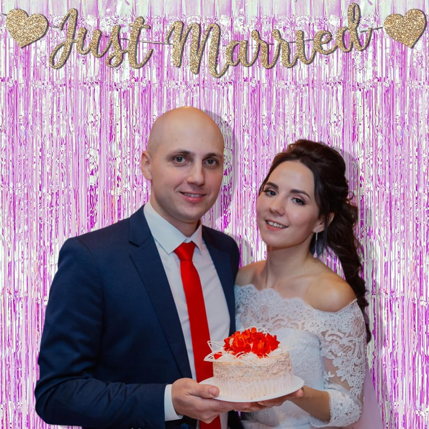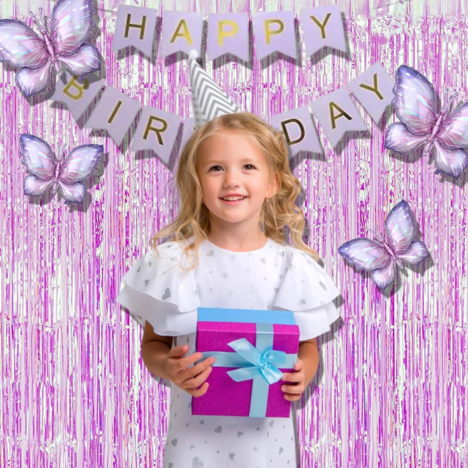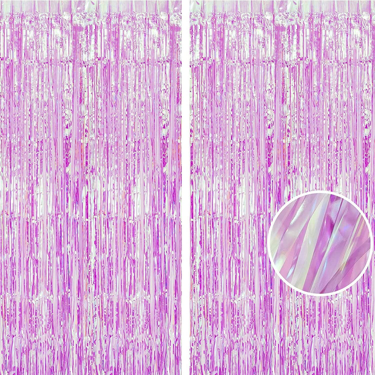BRAVESHINE Clear Purple Party Decorations Iridescent Foil Curtain - 2 Pack 3.2 x 6.5 ft Holographic Tinsel Backdrop Party Streamers Curtains for Birthdays Valentine’s Bachelorette Bridal Shower Decor