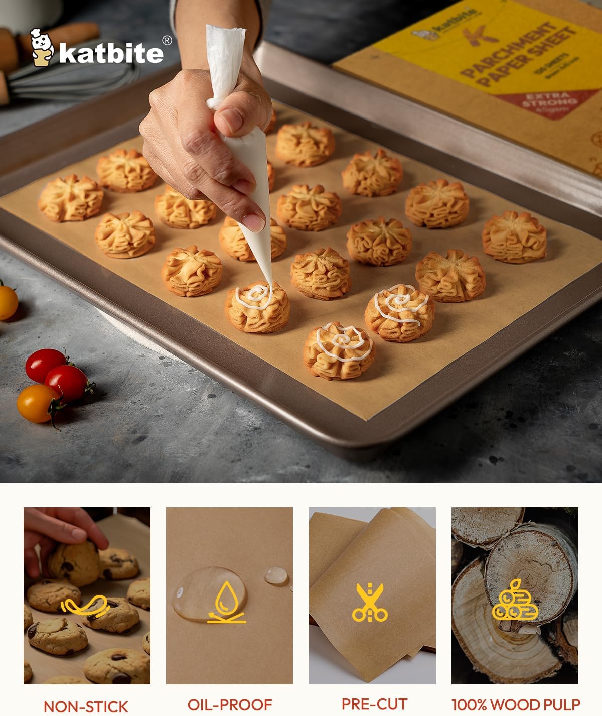 Katbite 120Pcs 8x12 inches Parchment Paper Sheets, Heavy Duty Unbleached Baking Paper, Pre-cut Parchment Paper for Baking, Air Fryer, Grilling, Steaming
