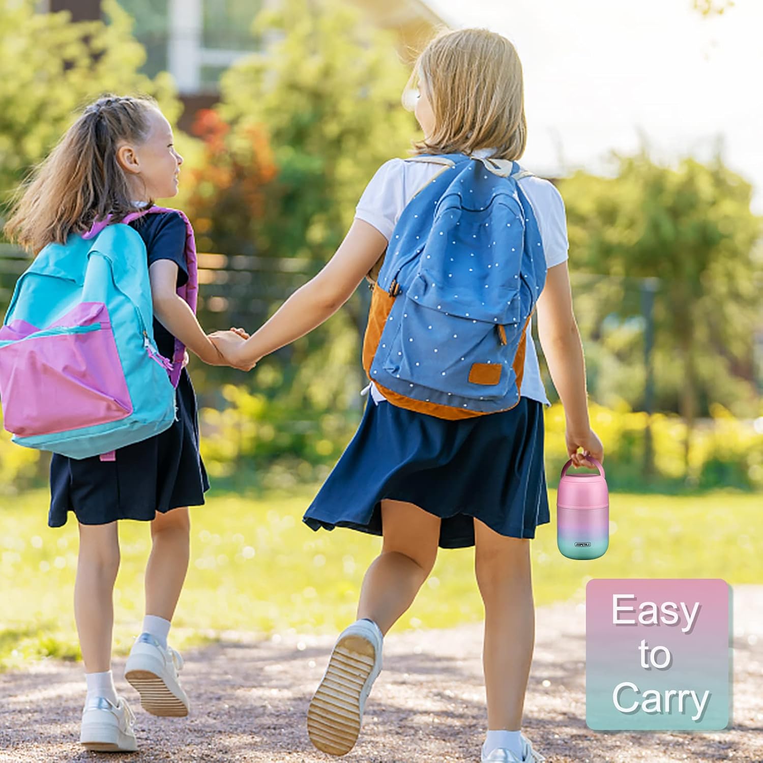 - Our insulated food jar has a unique hidden handle that can reduce the volume of the jar and save more space for you. It fits perfectly in school bags and boxes. The hidden handle could also avoid accidentally opening the lid while carrying school bags.