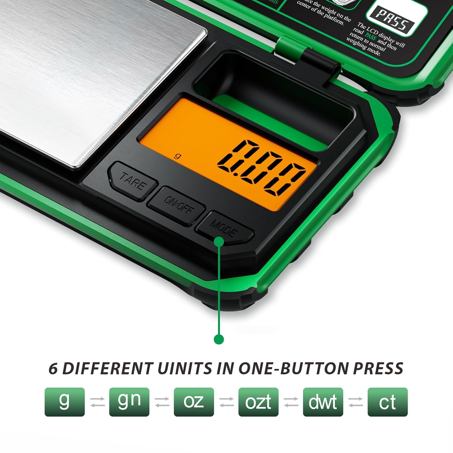 - Flexibility: You can customize the mode and the time for auto-off of this mini scale. You can quickly switch the measurement between g / oz / gn / ozt / dwt / ct by one key; You can also adjust the auto-off time according to your preferences;