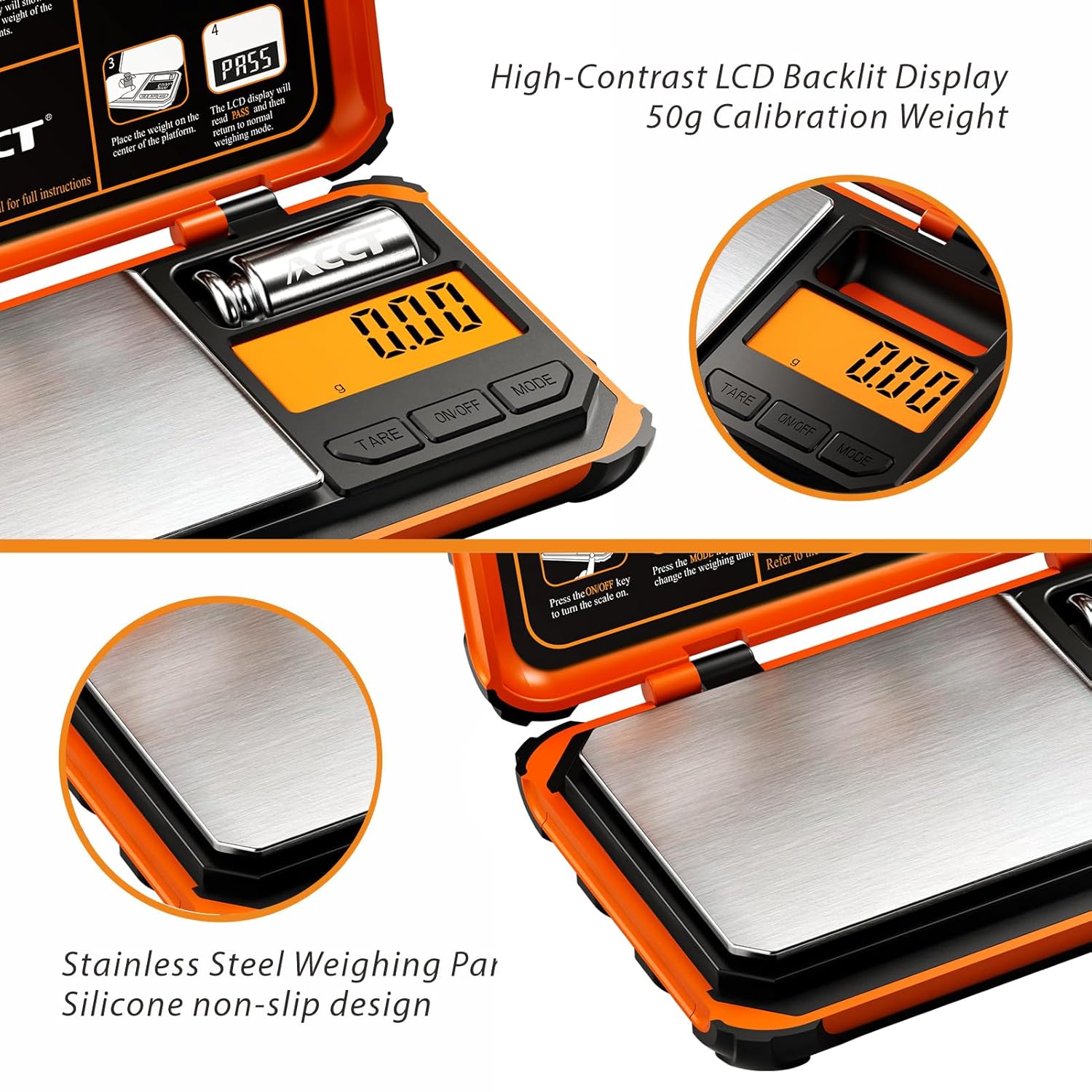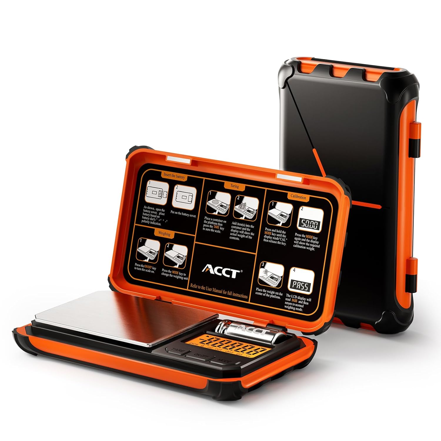 - Precise Measurement: ACCT digital pocket scale built with high precision sensor system, provides you with instant and accurate results from 0.01 g to 200 g; The error is within 0.005 grams, it is sensitive enough and comes with a 50g calibration weight;