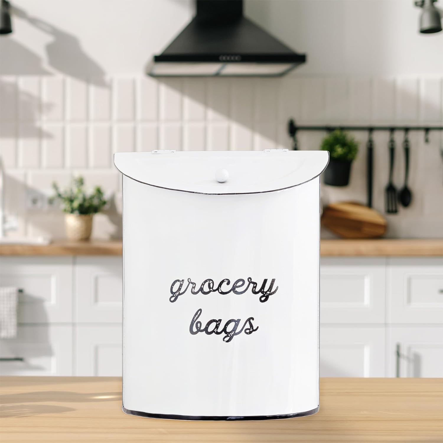 AuldHome Design Rustic Grocery Bag Holder; Wall-Mounted Vintage Enamelware Farmhouse Style Plastic Bag Dispenser for Kitchen or Laundry Room