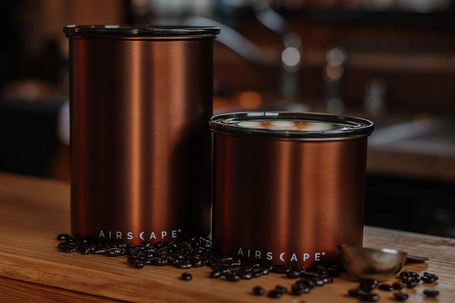 Planetary Design Airscape Stainless Steel Coffee Canister | Food Storage Container | US Patented Airtight Lid | Push Out Excess Air Preserve Food Freshness (Small, Brushed Copper)